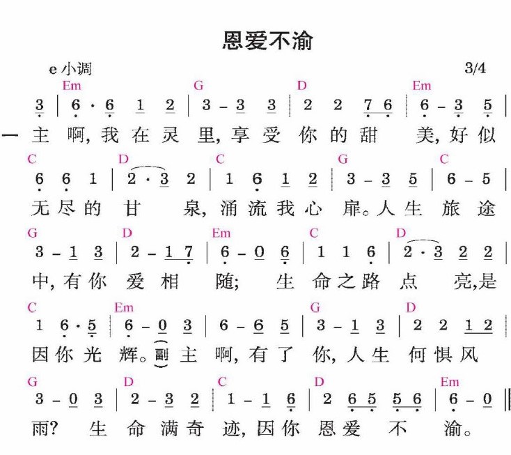 主啊,我在灵里,享受你的甜美,好似无尽的甘泉,涌流我心扉。人生旅途中,有你爱相随;生命之路点亮,是因你光辉。