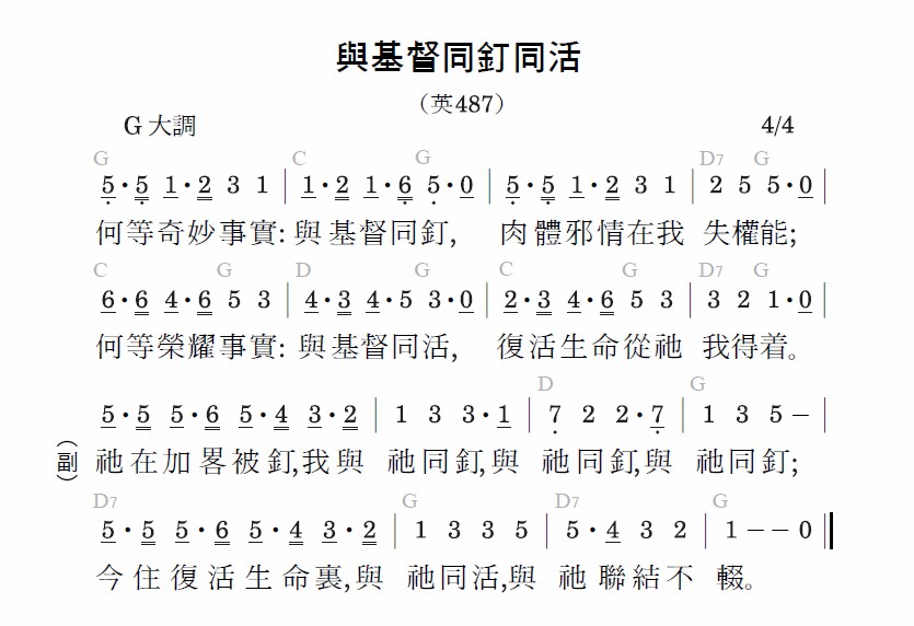 祂在加略被钉,我与祂同钉,与祂同钉,与祂同钉;今住复活生命里,与祂同活,与祂联结不辍。