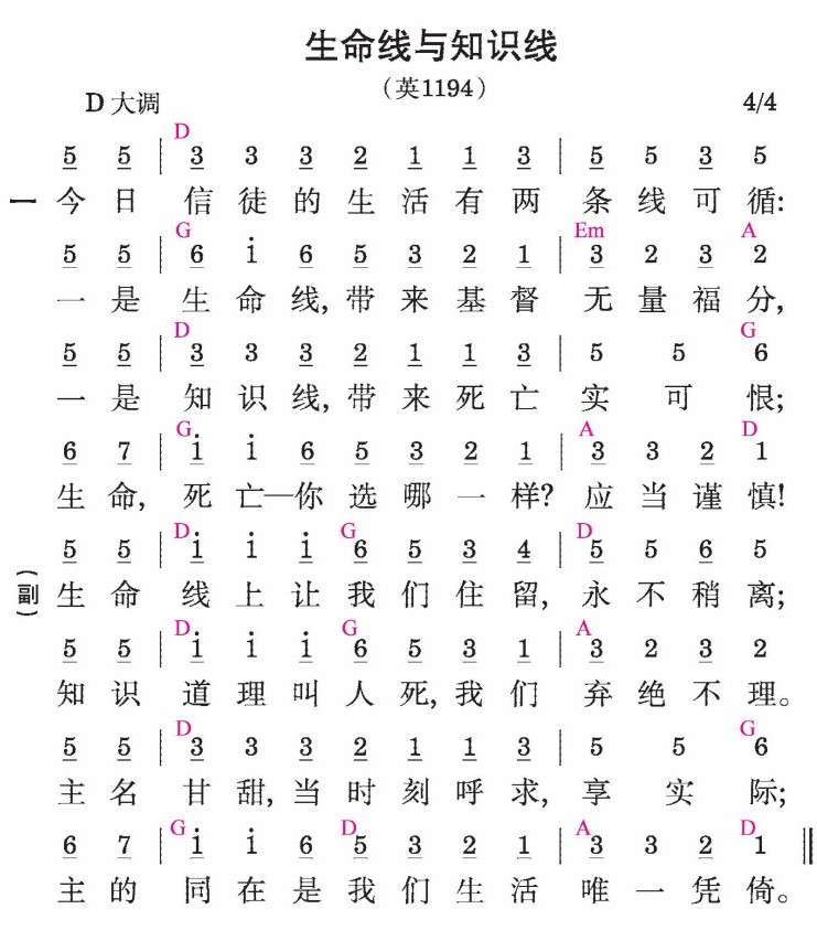 生命线上让我们住留,永不稍离;知识道理叫人死,我们弃绝不理。主名甘甜,当时刻呼求,享实际;主的同在是我们生活唯一凭倚。