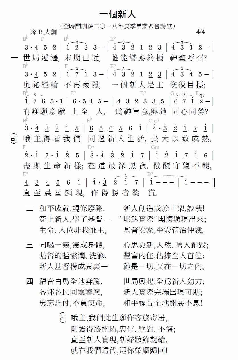 世局递迁,末期已近,谁能响应终极神圣呼召?奥秘经纶不再藏隐,一个新人是主恢复目标;有谁愿意献上全人,为神旨意,与祂同心同劳?