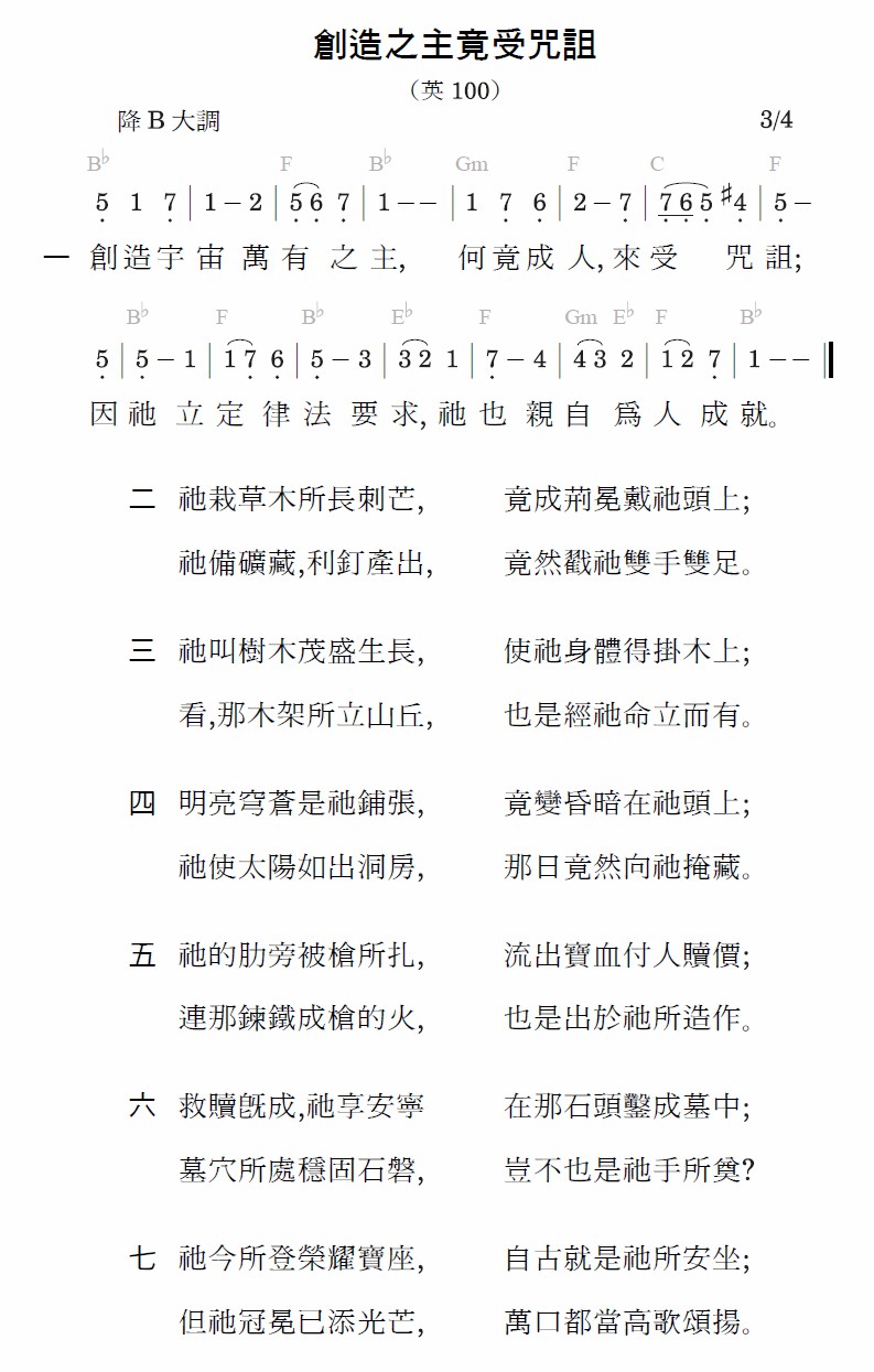 创造宇宙万有之主,何竟成人,来受咒诅;因祂立定律法要求,祂也亲自为人成就。