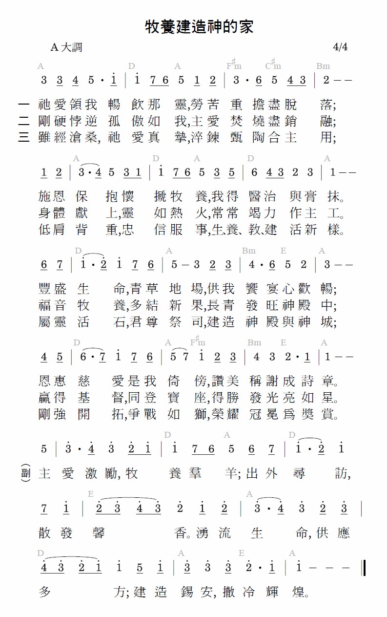 主爱激励,牧养群羊;出外寻访,散发馨香。涌流生命,供应多方;建造锡安,撒冷辉煌。
