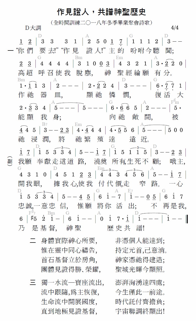 “你们要去!”“作见证人!”主的吩咐今听闻;高超呼召使我脱尘,神圣经纶愿有分。作祂器皿,显祂怜悯,复活大能显我身;向祂敞开,被祂浸润,将祂繁殖达远近。