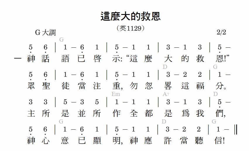 “这么大的救恩”即已赐给我们,主所是并所作,取用应当认真;好能与主相肖,祂荣耀全有分;作众子,同长兄,父生命显无尽。
