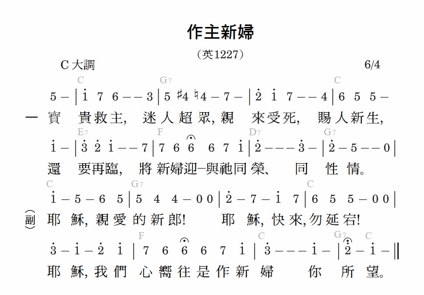 宝贵救主,迷人超众,亲来受死,赐人新生,还要再临,将新妇迎—与祂同荣、同性情。
