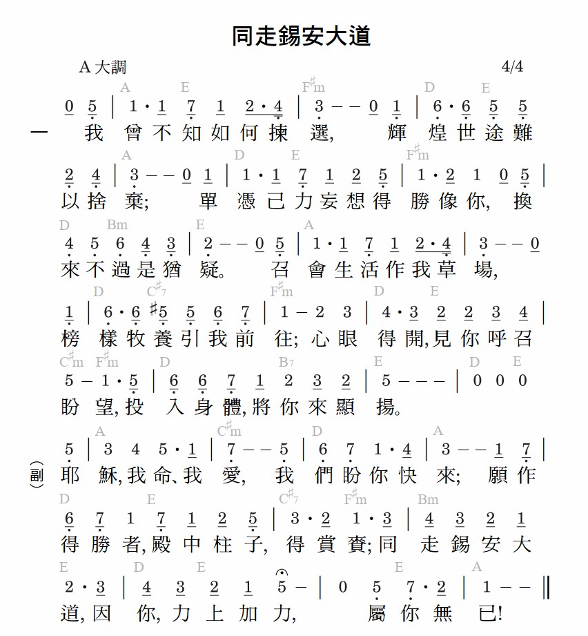 耶稣,我命、我爱,我们盼你快来;愿作得胜者,殿中柱子,得赏赉;同走锡安大道,因你,力上加力,属你无已!