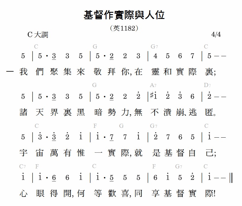 我们聚集来敬拜你,在灵和实际里;诸天界里黑暗势力,无不溃崩、逃匿。宇宙万有惟一实际,就是基督自己;心眼得开,何等欢喜,同享基督实际!