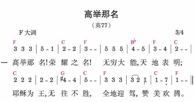 高举那名!荣耀之名!无穷大能,天地表明;耶稣为王,无往不胜,全地迎驾,赞美欢腾。