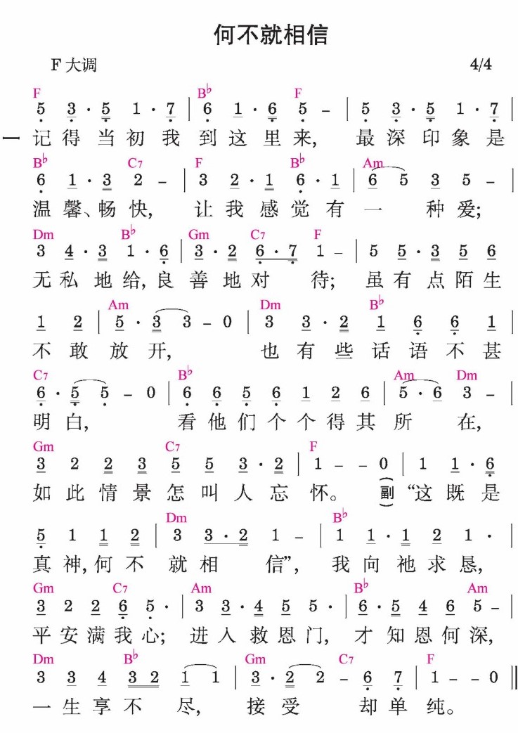 “这既是真神,何不就相信”,我向祂求恳,平安满我心;进入救恩门,才知恩何深一生享不尽,接受却单纯。