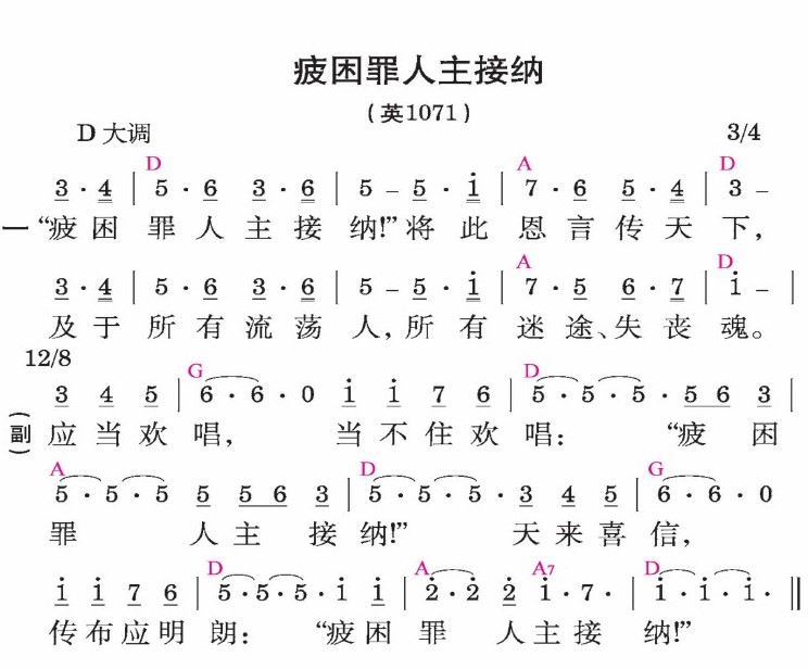 应当欢唱,当不住欢唱:“疲困罪人主接纳!”天来喜信,传布应明朗:“疲困罪人主接纳!”