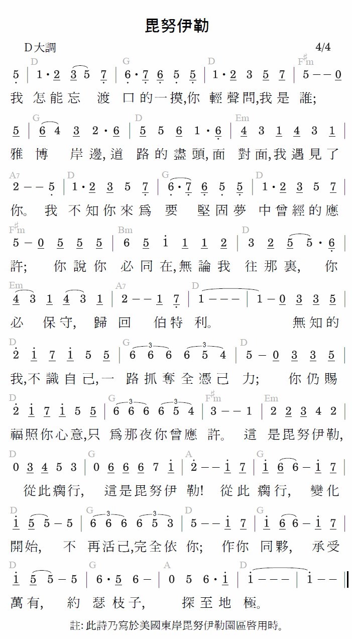 我怎能忘渡口的一摸,你轻声问,我是谁;雅博岸边,道路的尽头,面对面,我遇见了你。我不知你来为要坚固梦中曾经的应许;你说你必同在,无论我往那里,你必保守,归回伯特利。无知的我,不识自己,一路抓夺全凭己力;你仍赐福照你心意,只为那夜你曾应许。这是毗努伊勒,从此瘸行,这是毗努伊勒!从此瘸行,变化开始,不再活己,完全依你;作你同伙,承受万有,约瑟枝子,探至地极。