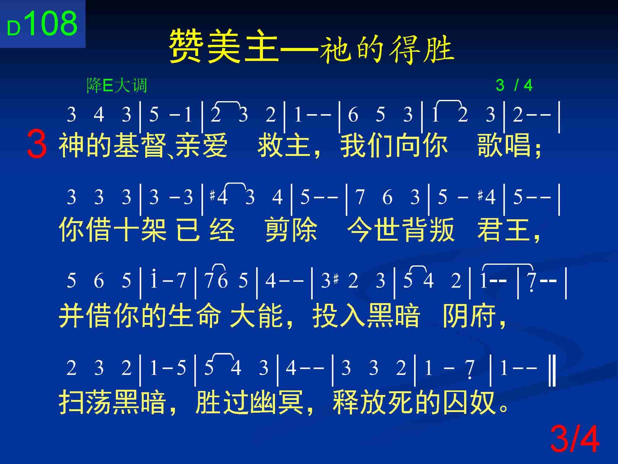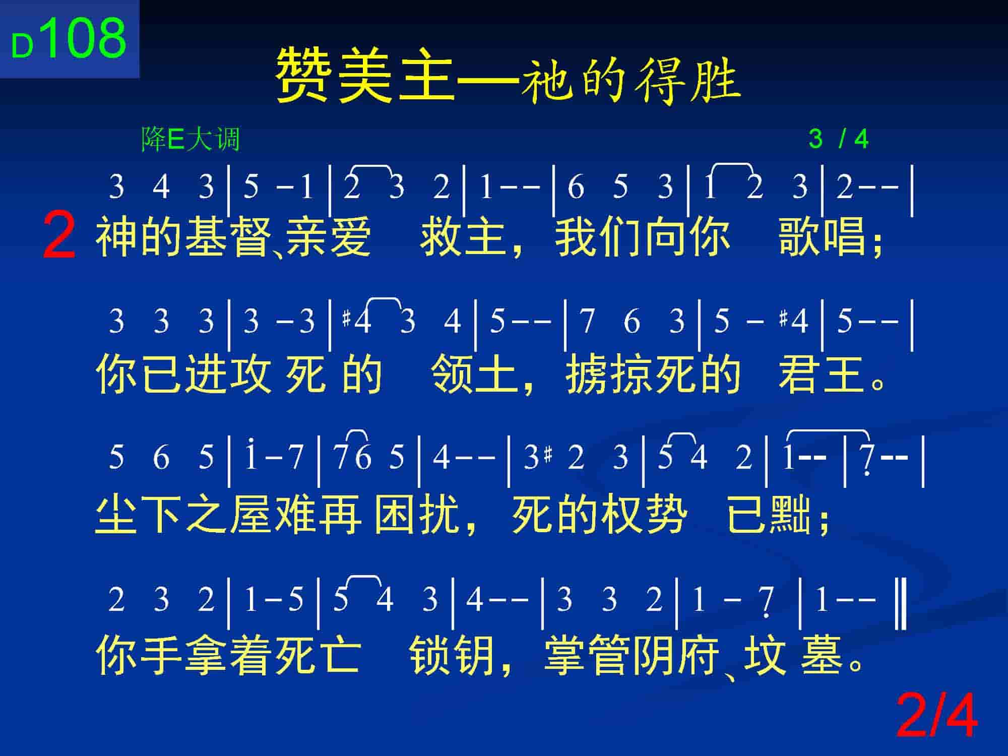 神的基督、亲爱救主,我们向你歌唱;你已进攻死的领土,掳掠死的君王。尘下之屋难再困扰,死的权势已黜;你手拿着死亡锁钥,掌管阴府、坟墓。