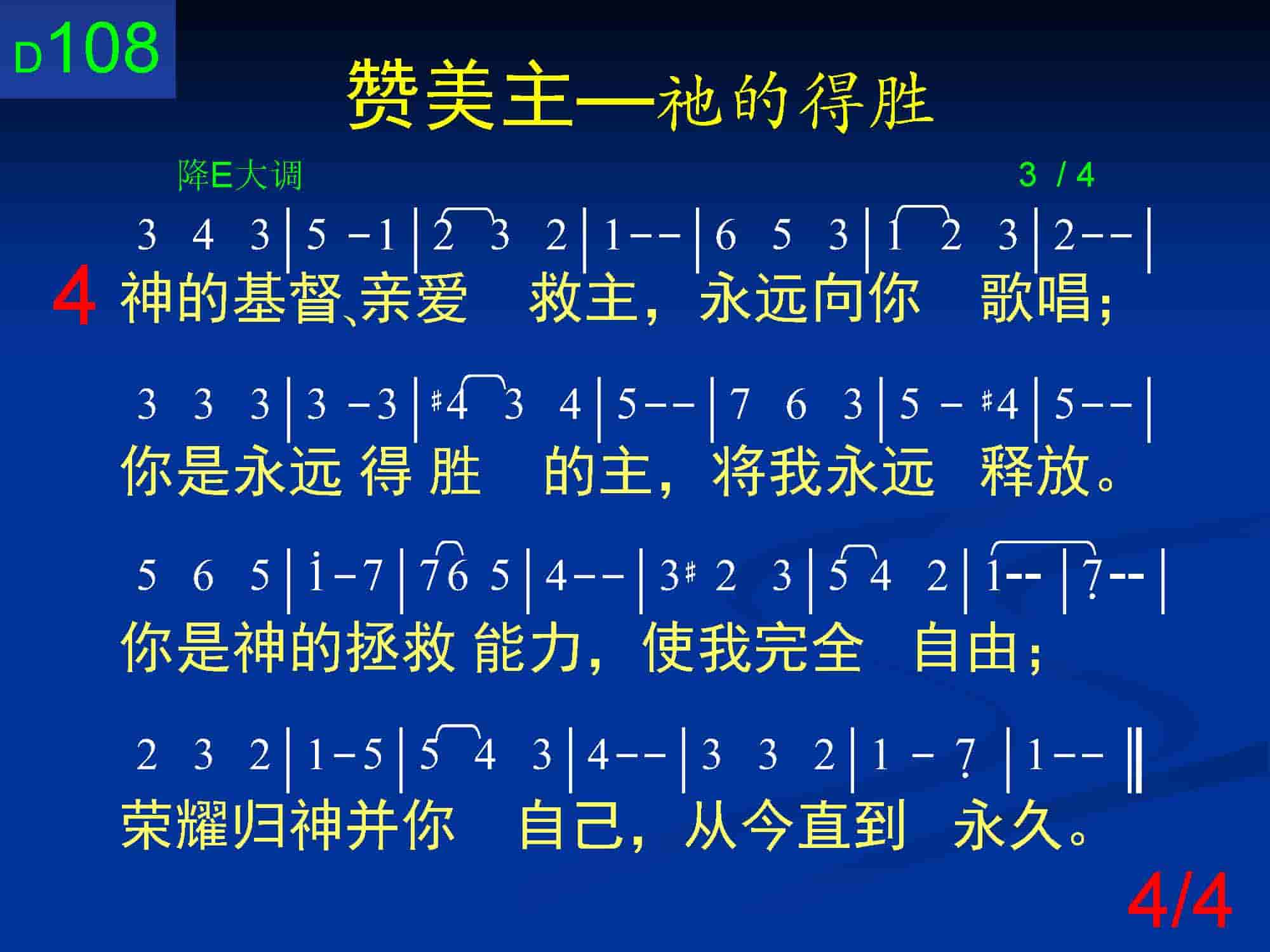 神的基督、亲爱救主,永远向你歌唱;你是永远得胜的主,将我永远释放。你是神的拯救能力,使我完全自由;荣耀归神并你自己,从今直到永久。