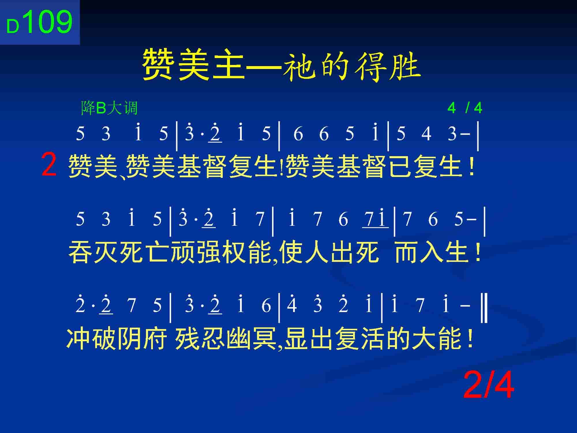 借着十字架祂进入死,然而死却不能拘禁祂里面的复活生命!第二节:“赞美基督已复生!吞灭死亡顽强权能,使人出死而入生!冲破阴府残忍幽冥,显出复活的大能!”“神在基督身上所运行的能力,首先使祂从死人中复活。这能力已经胜过死、坟墓和拘禁死人的地方-阴间。由于神复活的能力,死和阴间就不能拘禁基督(徒二24)。”(弗一20注1)“因着在我们里面的是使我们超过一切的超越能力,我们就必须从我们的软弱中起来,且相信这样的话:我们是超越的。我们需要看见这个、相信这个、且述说这个。…不要相信你的光景,乃要取用神的话,并宣告其中所说的。”(以弗所书生命读经第十六篇)这样胜过死亡和阴间的能力如今正在我们信徒里面运行,何时我们借着赞美兴起我们的灵来宣告基督已经成就的事实:“吞灭死亡顽强权能”、“冲破阴府残忍幽冥”,何时我们就能实际地经历从死的景况中兴起而能出死入生!