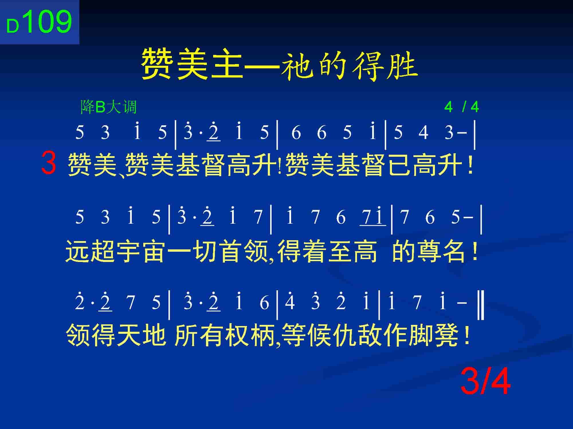 这首诗歌第三节说到基督的高升,乃是基督救赎的完成。祂的救赎不仅仅为我们受死,钉在十字架上;也不仅借着复活把神圣的生命注入到我们里面,更是包括升天。主在复活之日的早晨升到天上,从神得着天上、地上所有的权柄。