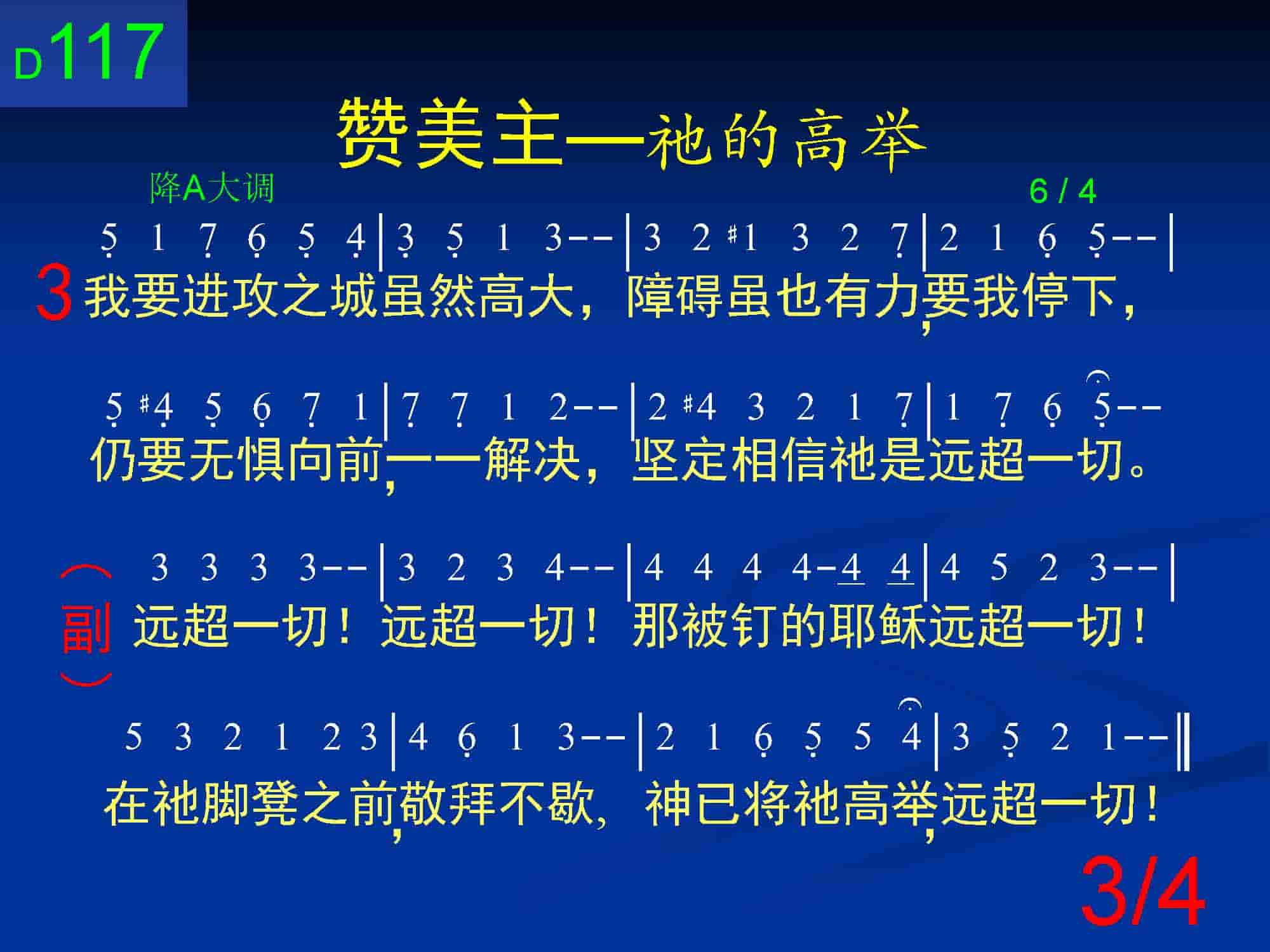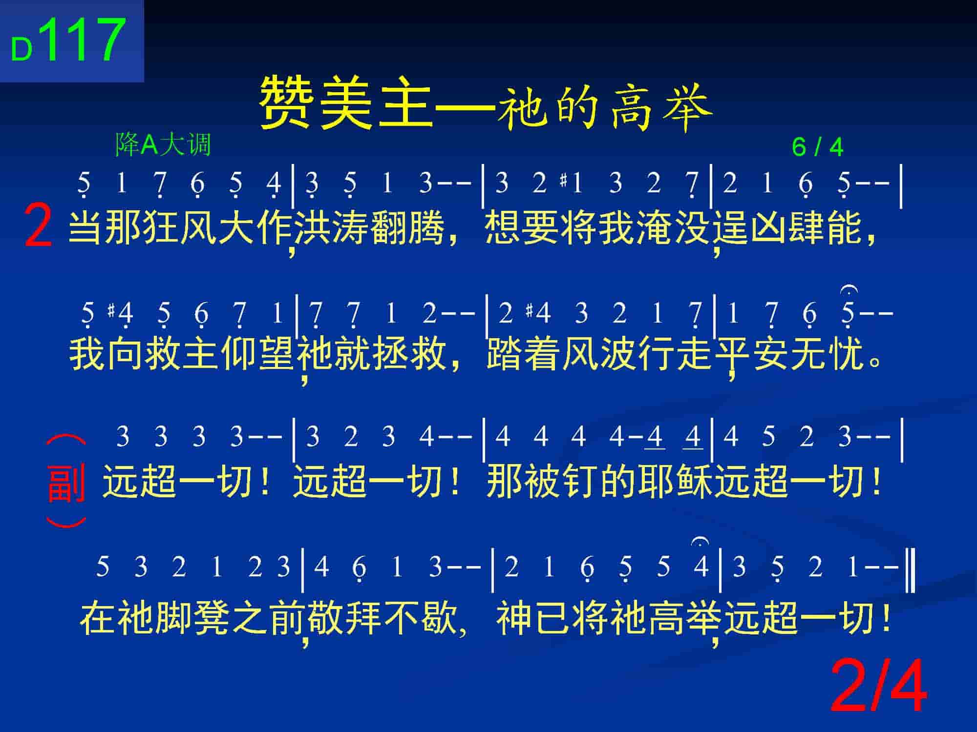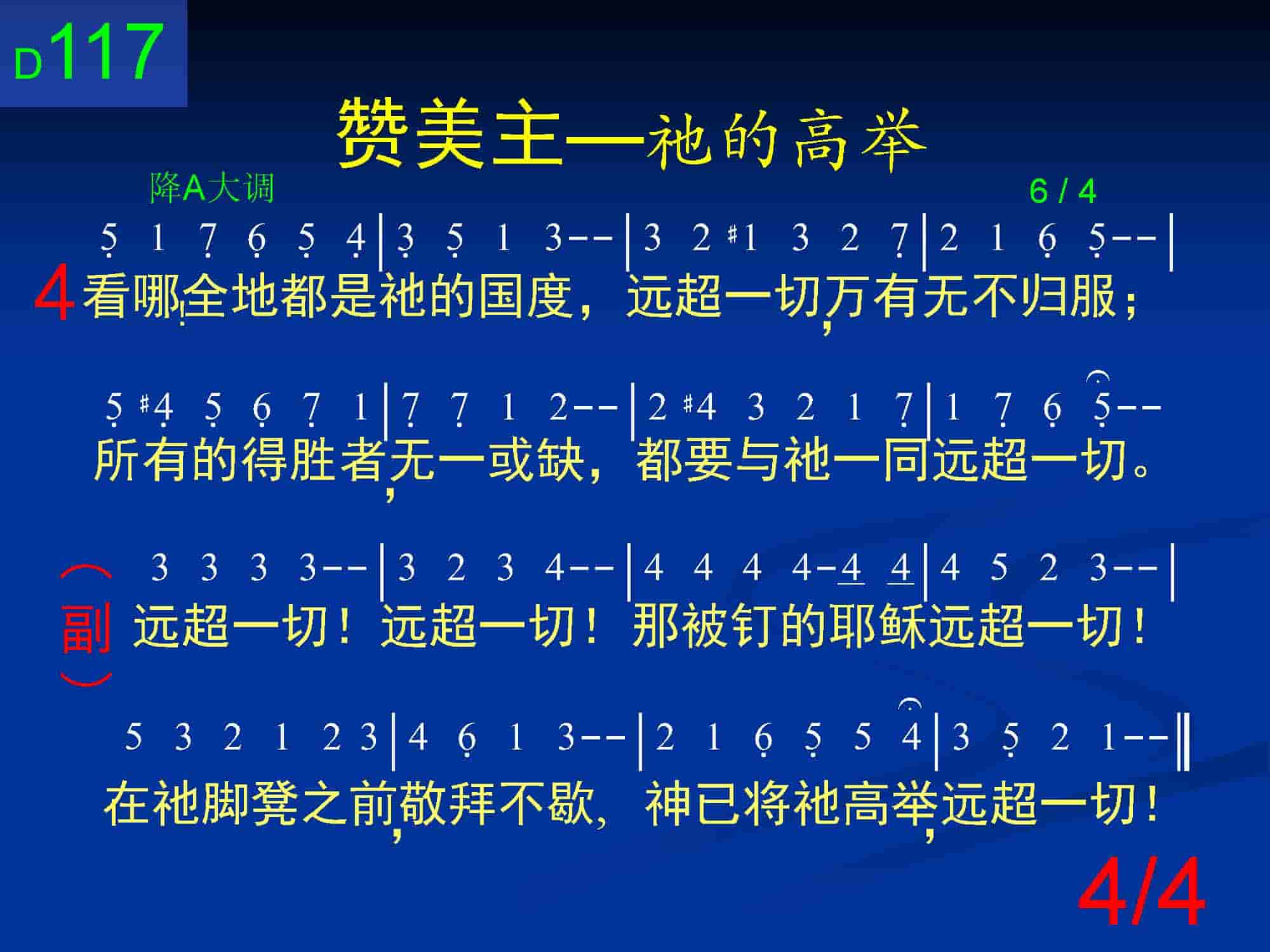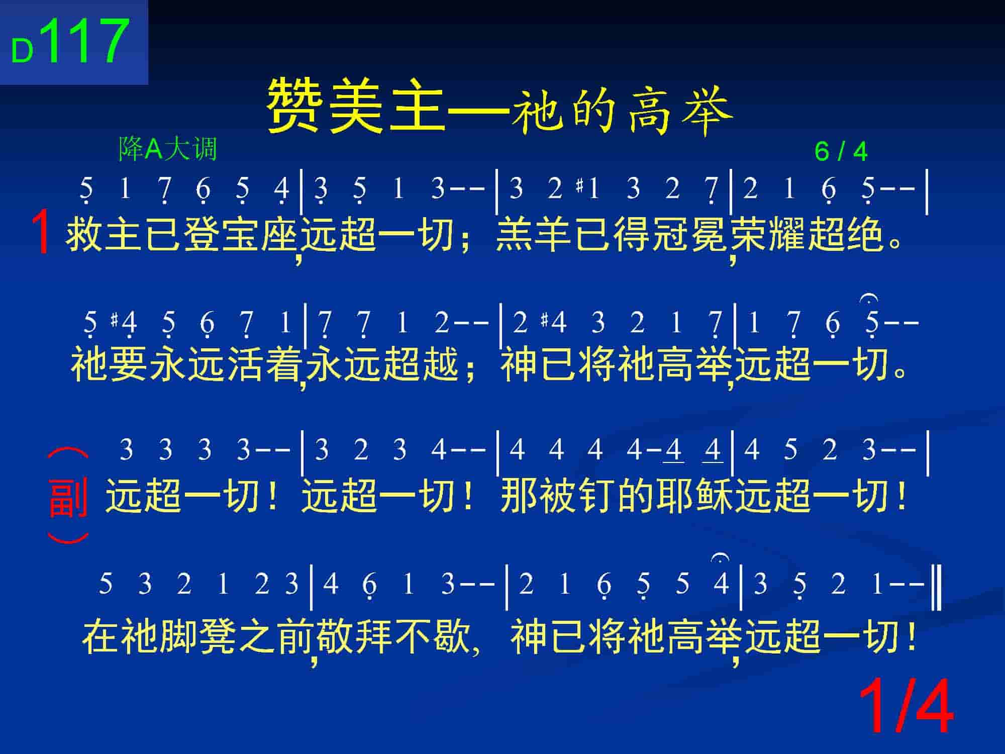 救主已登宝座,远超一切;羔羊已得冠冕,荣耀超绝。祂要永远活着,永远超越;神已将祂高举,远超一切。