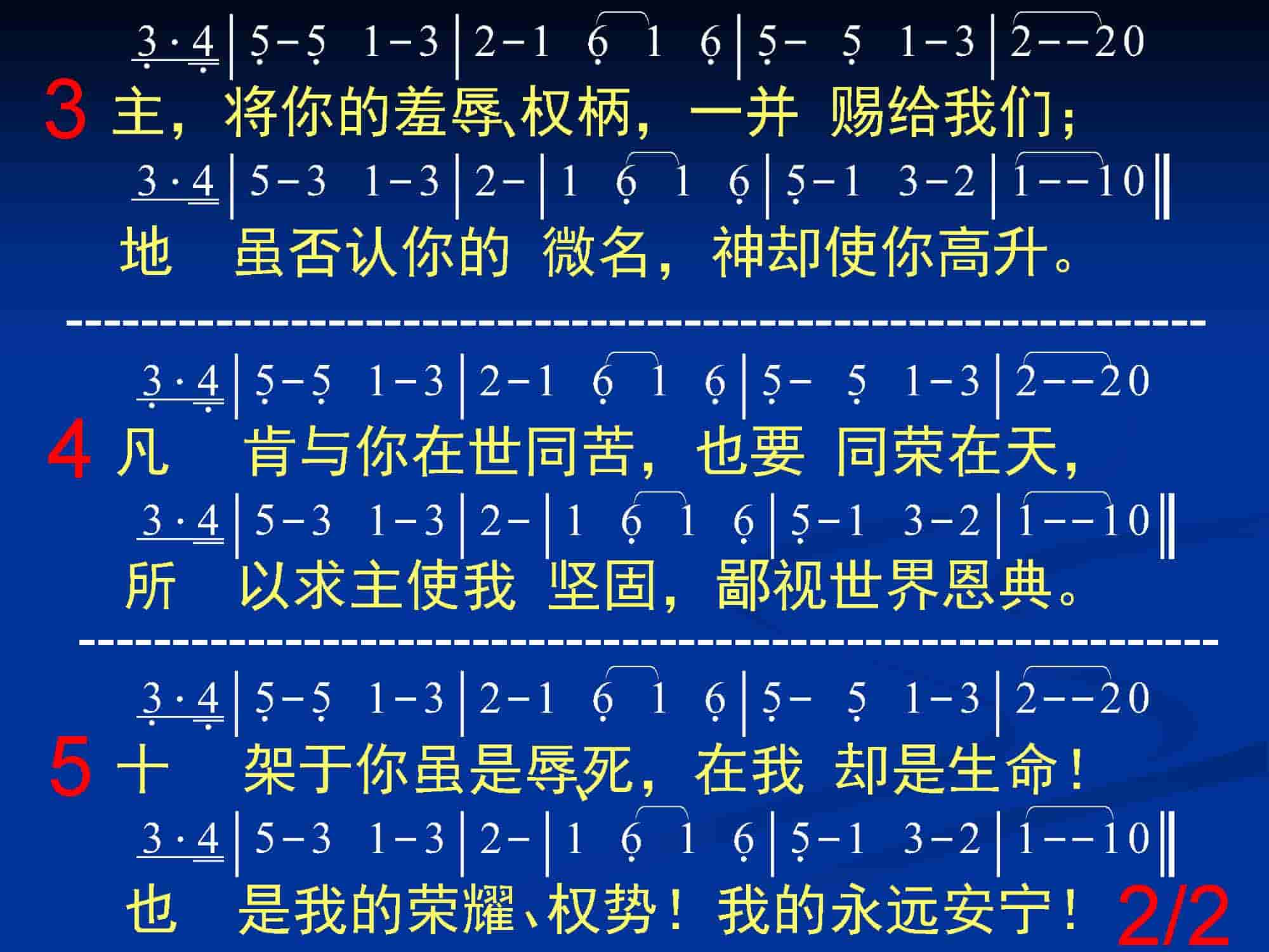 凡肯与你在世同苦,也要同荣在天,所以求主使我坚固,鄙视世界恩典。