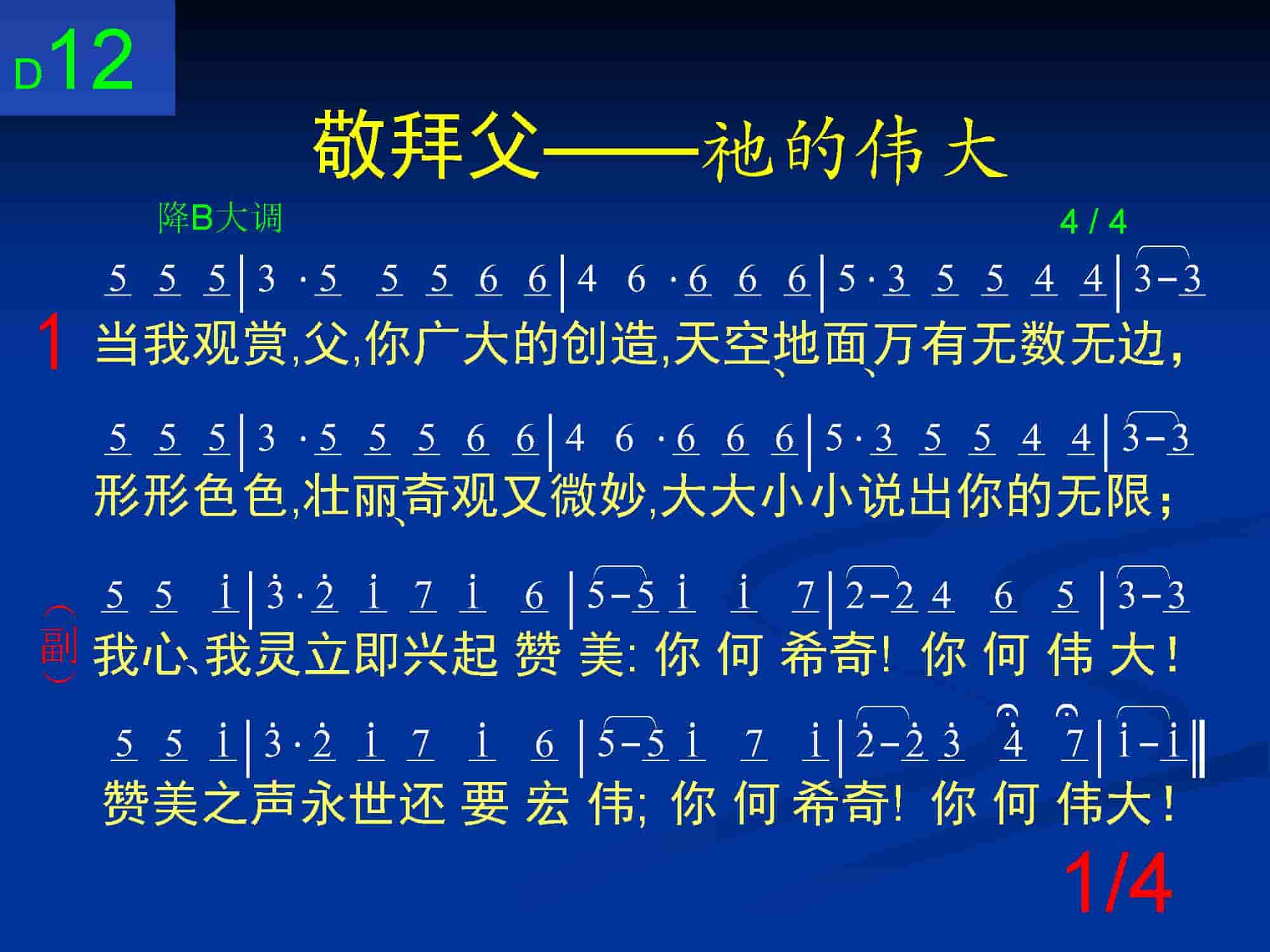 当我观赏,父,你广大的创造,天空、地面、万有无数无边,形形色色,壮丽、奇观又微妙,大大小小说出你的无限;