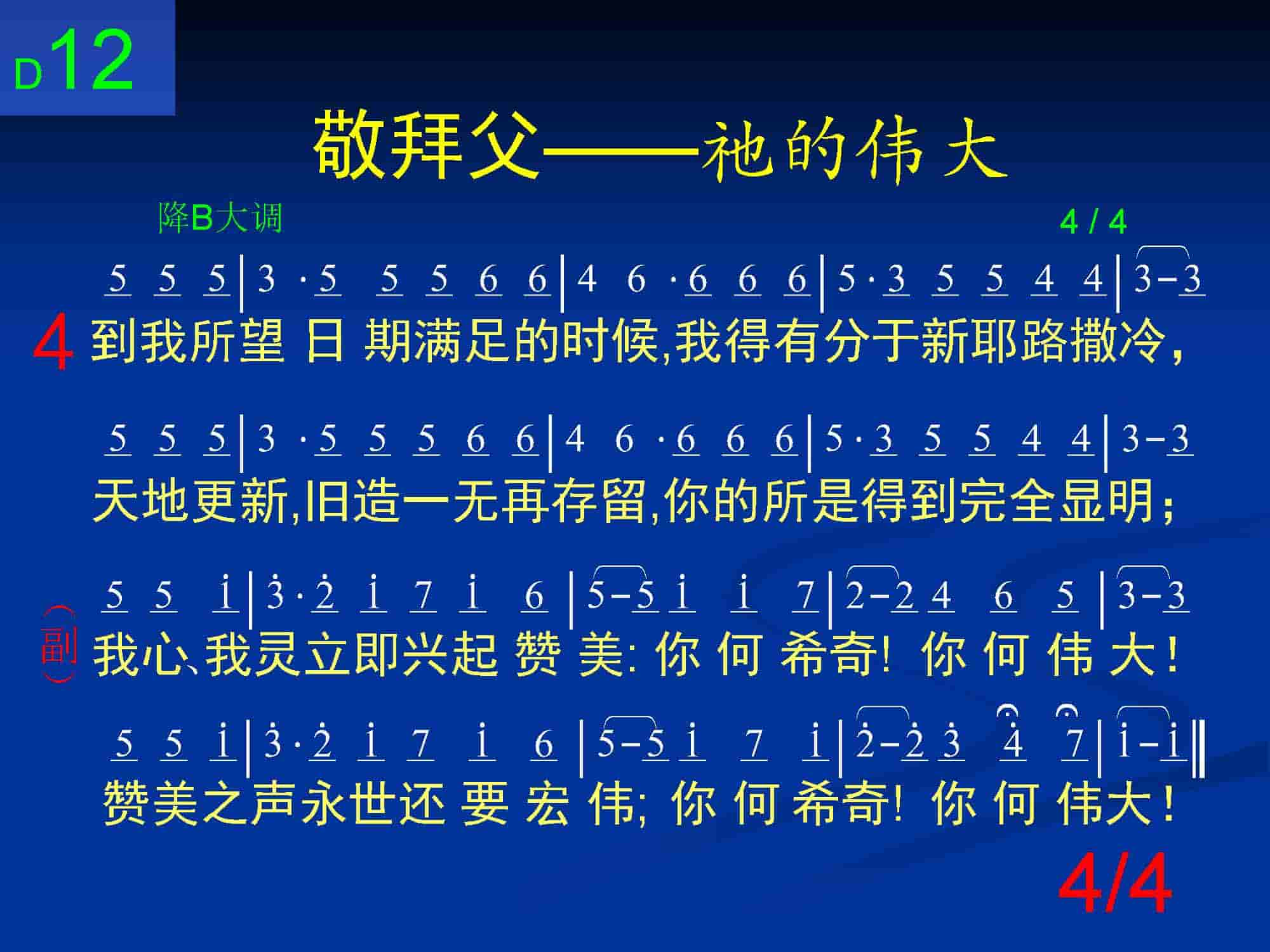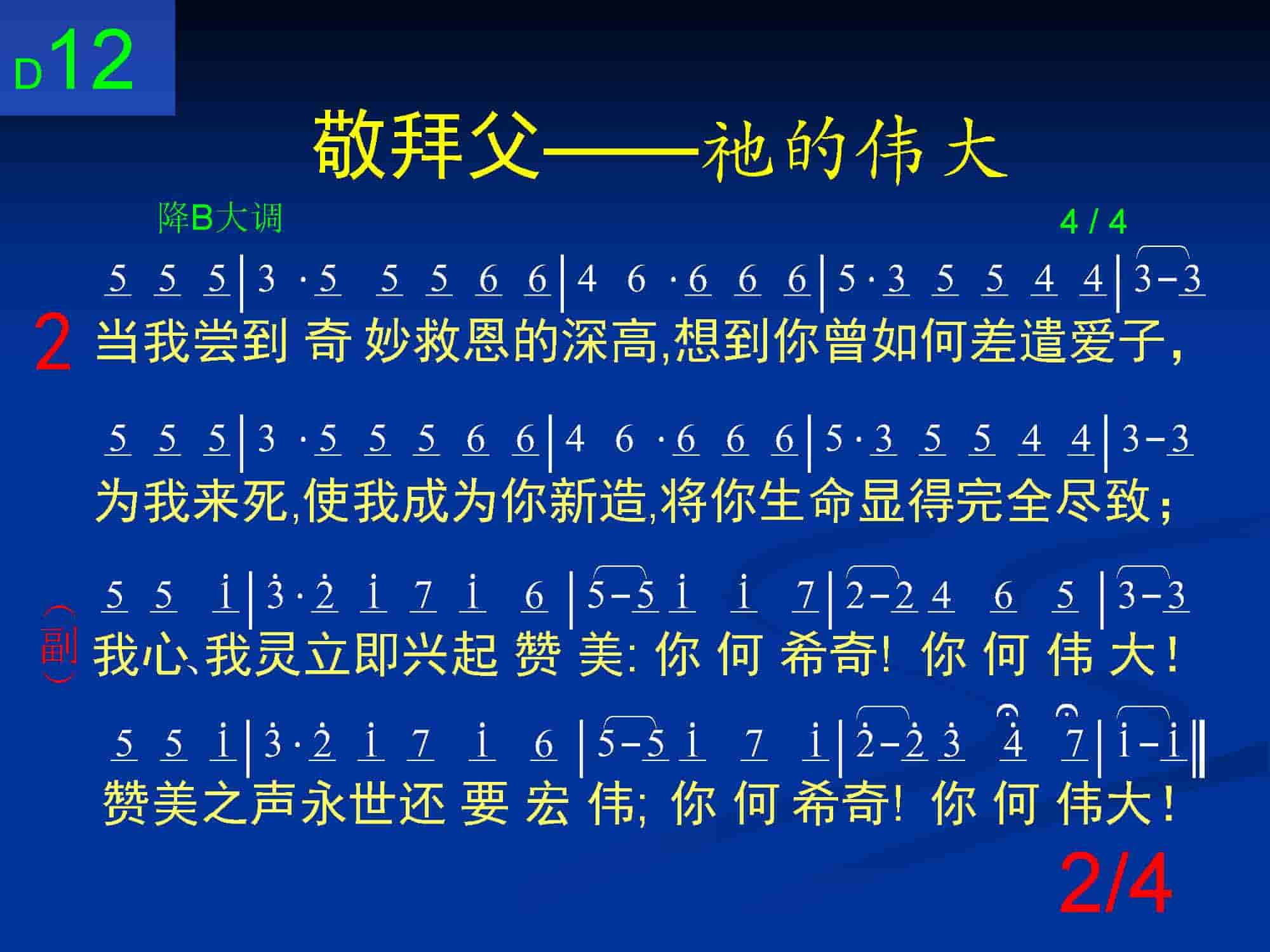 我心、我灵立即兴起赞美:你何希奇!你何伟大!赞美之声永世还要宏伟;你何希奇!你何伟大!