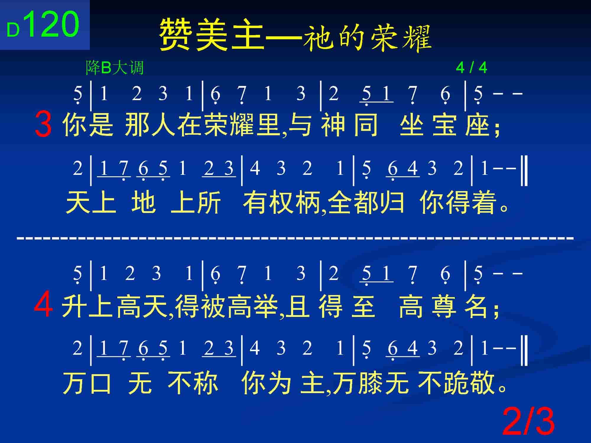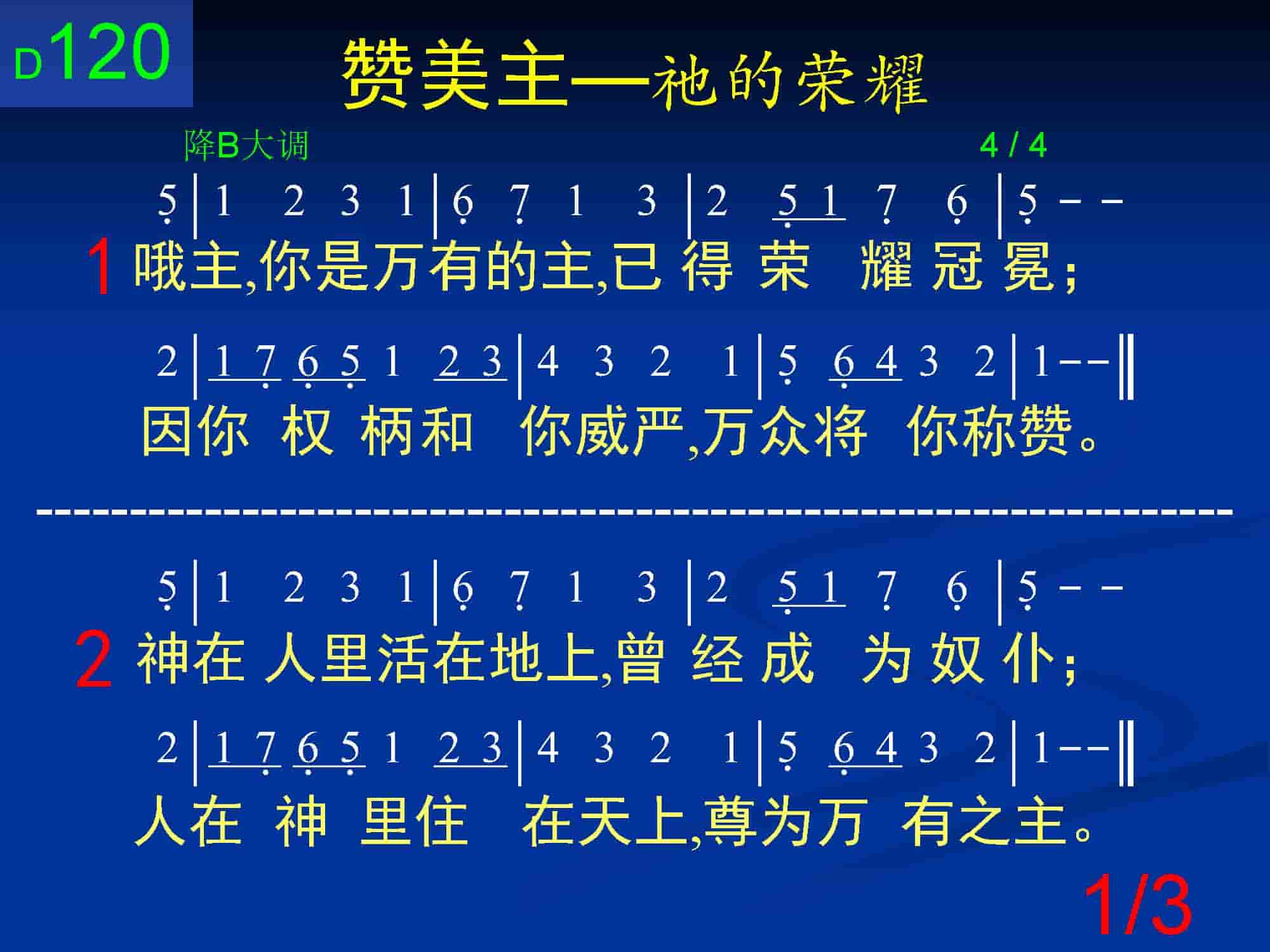 哦主,你是万有的主,已得荣耀冠冕;因你权柄和你威严,万众将你称赞。