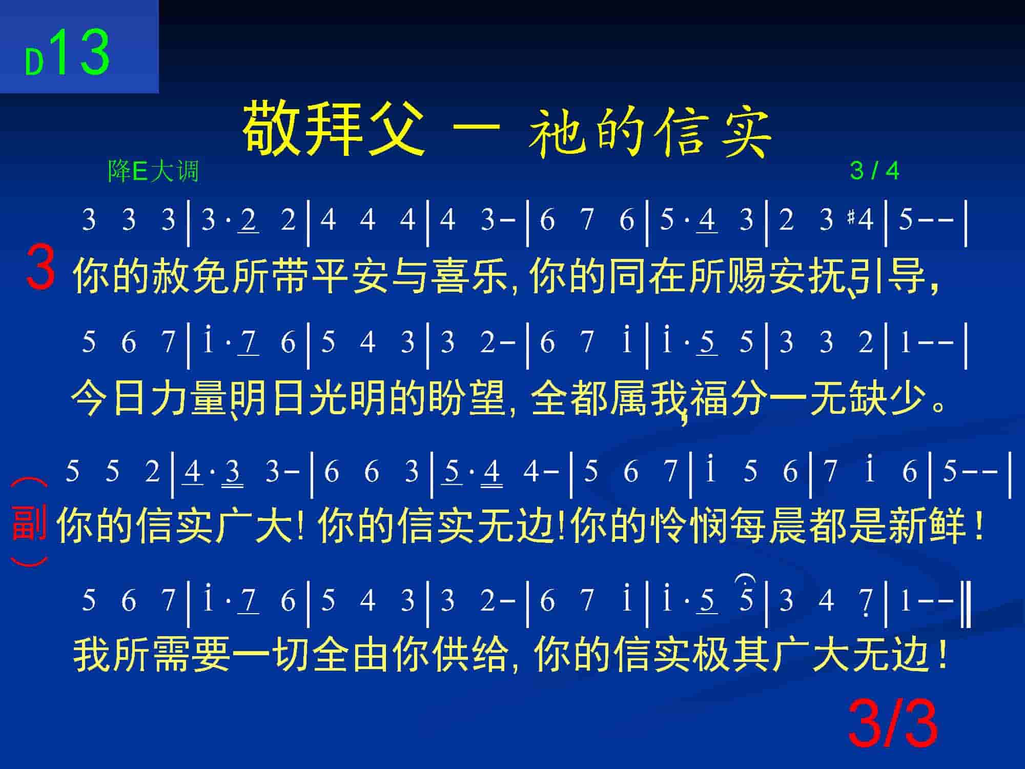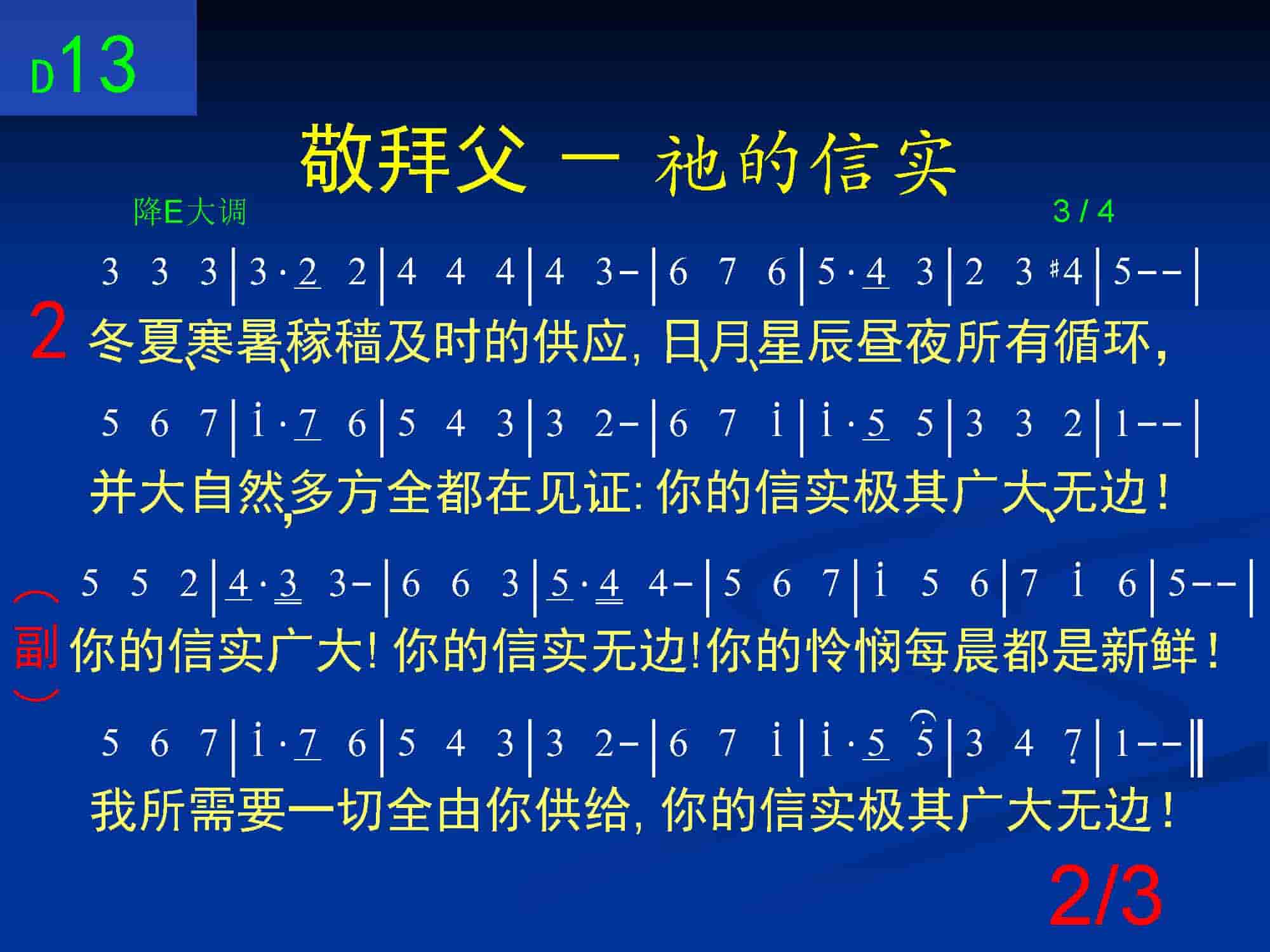 你的信实广大!你的信实无边!你的怜悯每晨都是新鲜!我所需要一切全由你供给,你的信实极其广大无边!