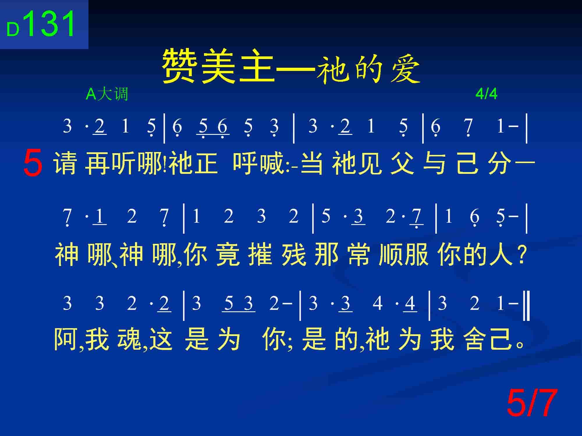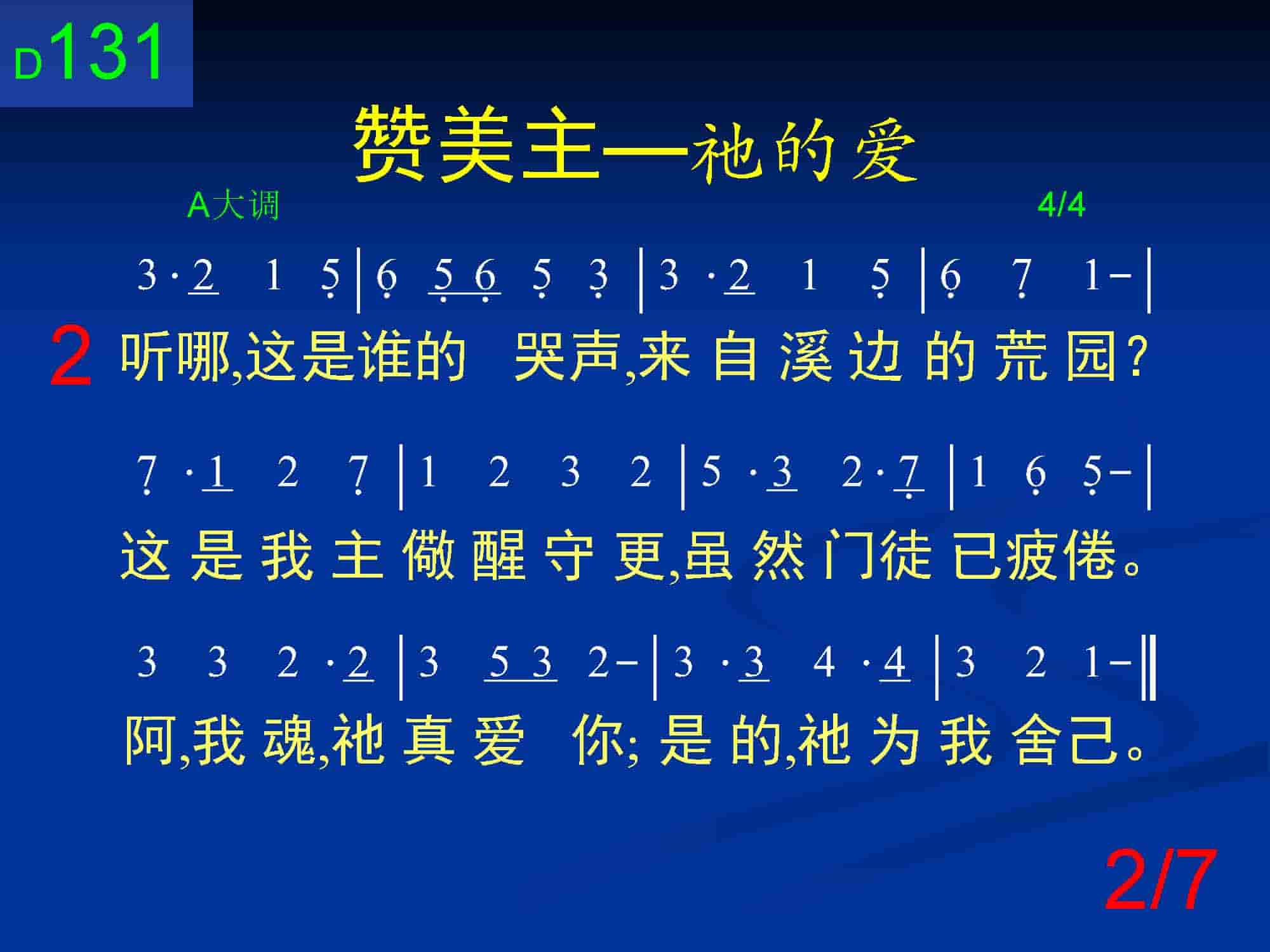 听哪,这是谁的哭声,来自溪边的荒园?这是我主儆醒守更,虽然门徒已疲倦。啊,我魂,祂真爱你;是的,祂为我舍己。
