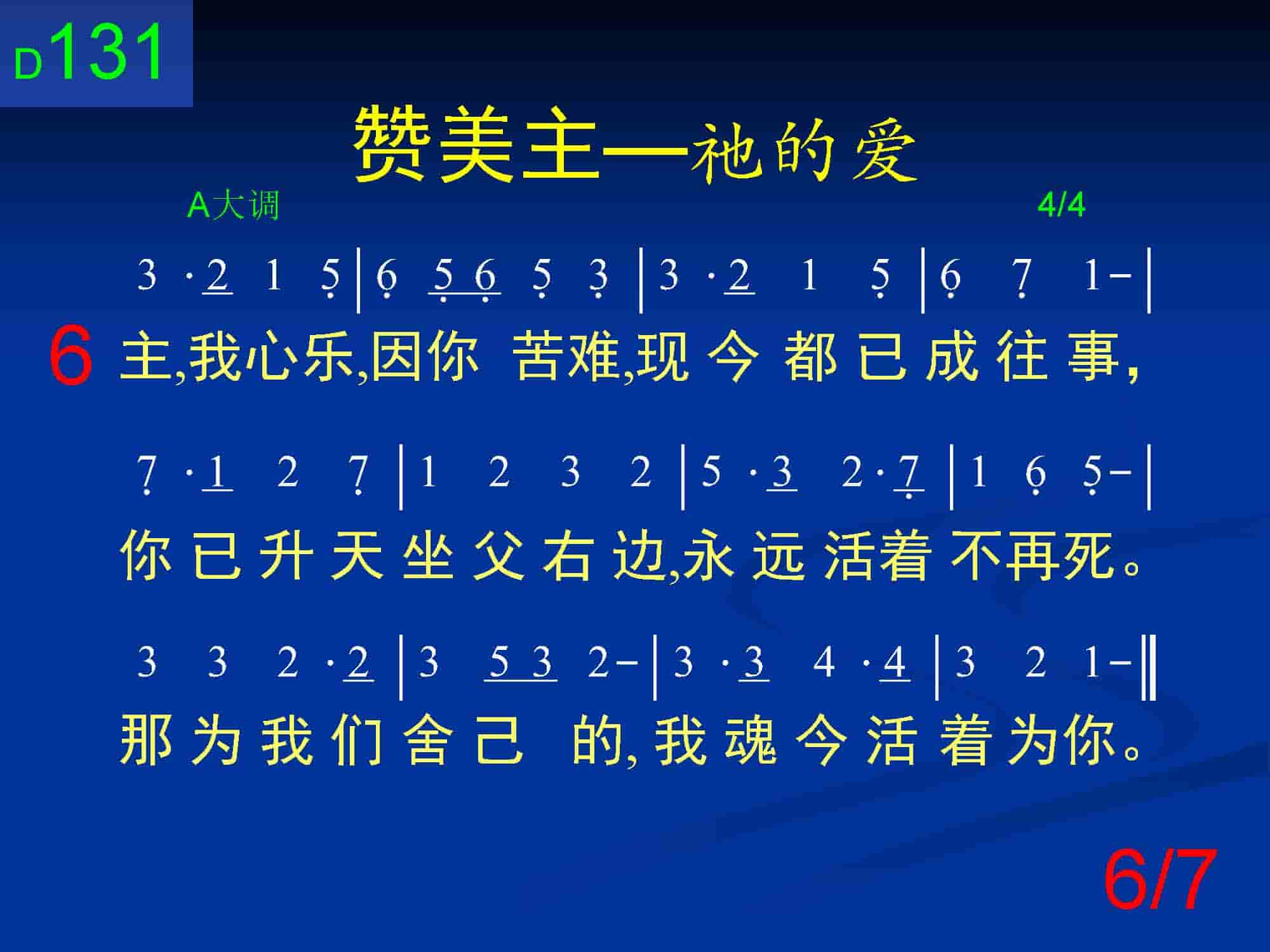 主,我心乐,因你苦难,现今都已成往事,你已升天坐父右边,永远活着不再死。那为我们舍己的,我魂今活着为你。