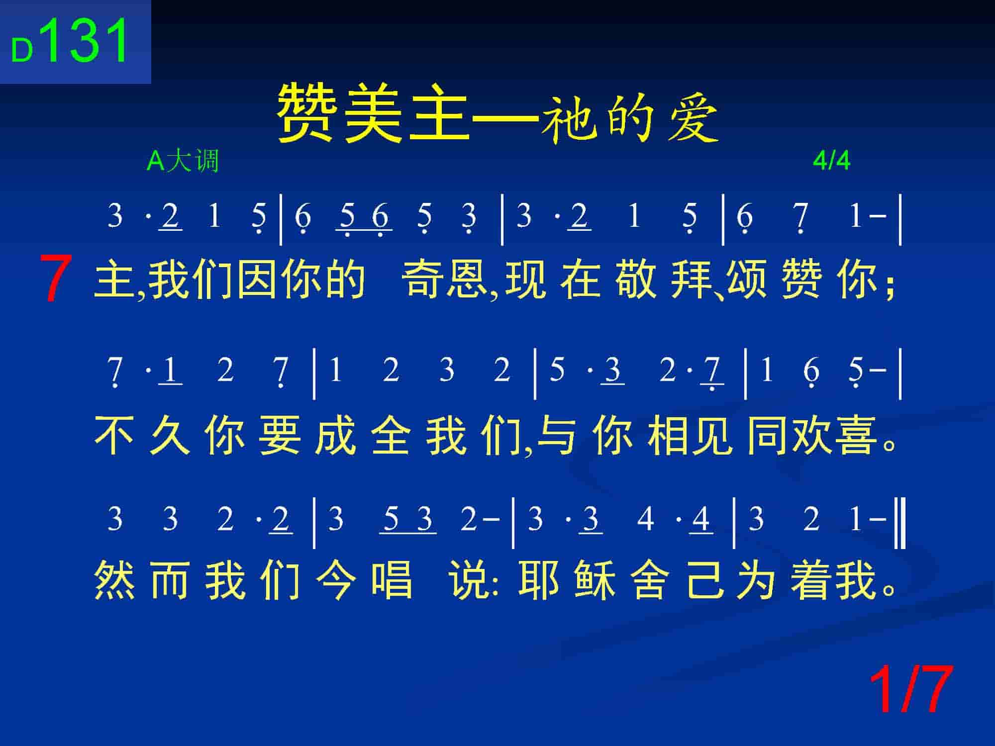 主,我们因你的奇恩,现在敬拜、颂赞你;不久你要成全我们,与你相见同欢喜。然而我们今唱说:耶稣舍己为着我。