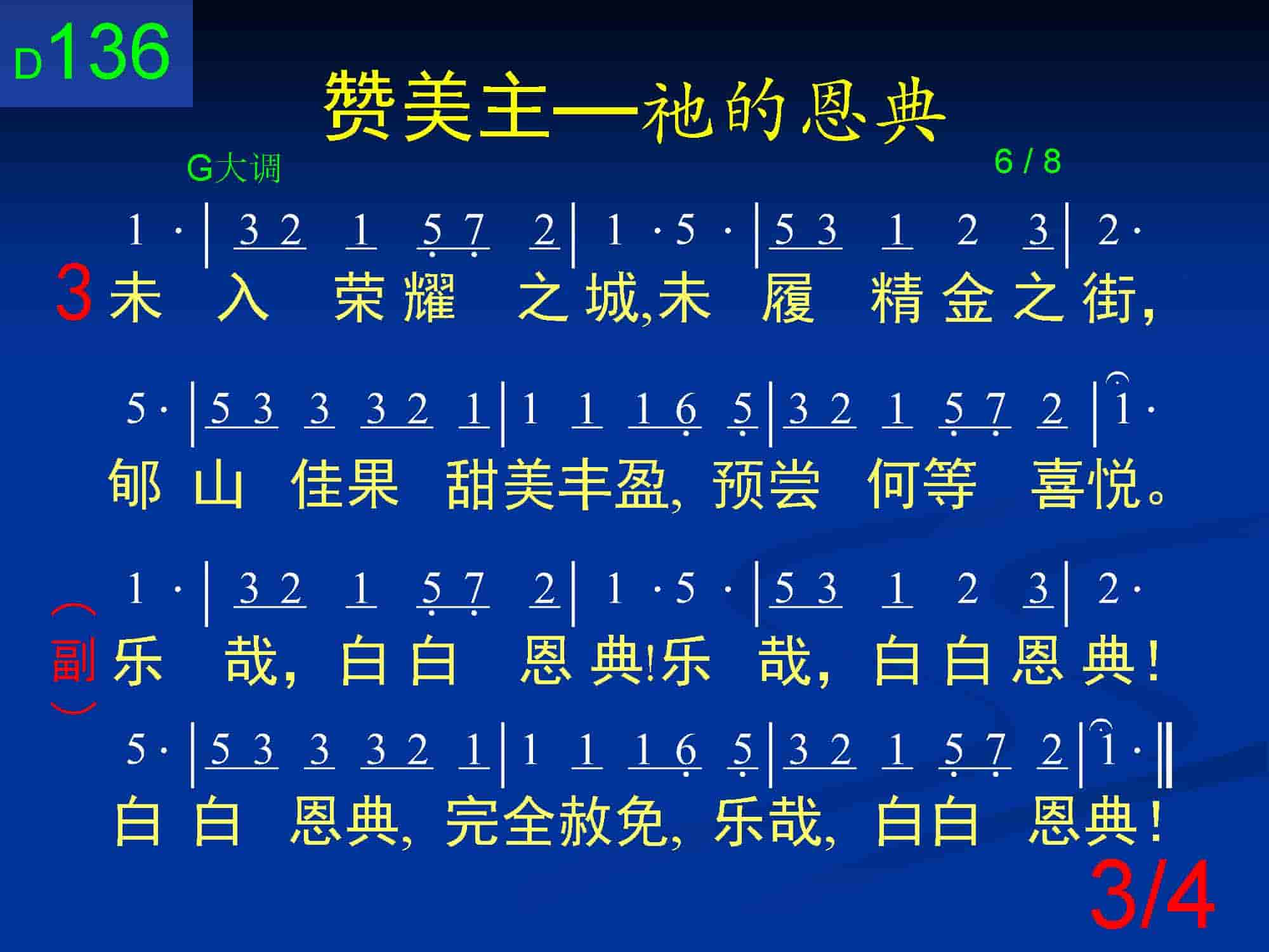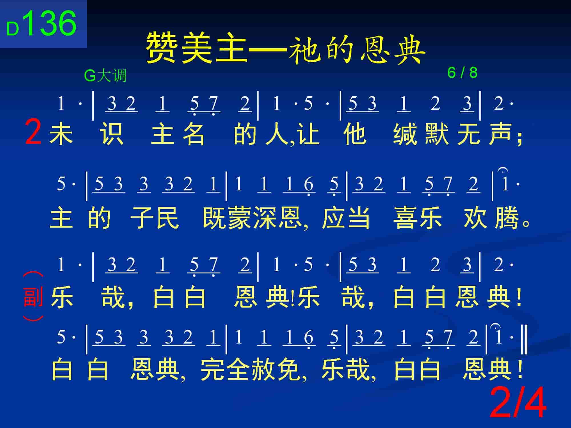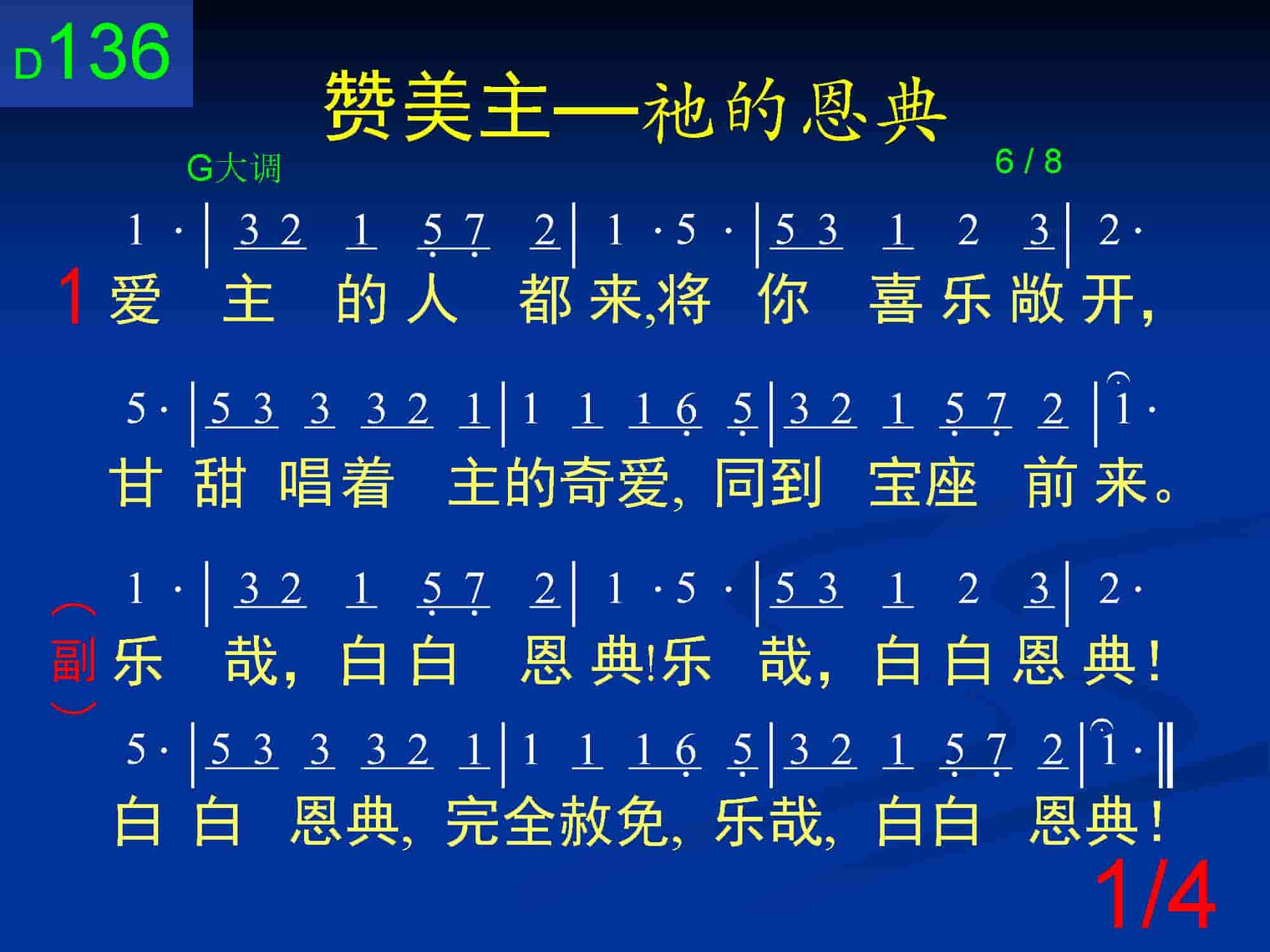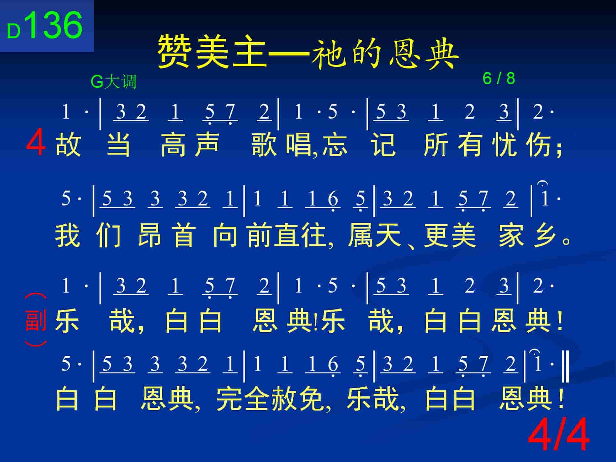 乐哉,白白恩典!乐哉,白白恩典!白白恩典,完全赦免,乐哉,白白恩典!