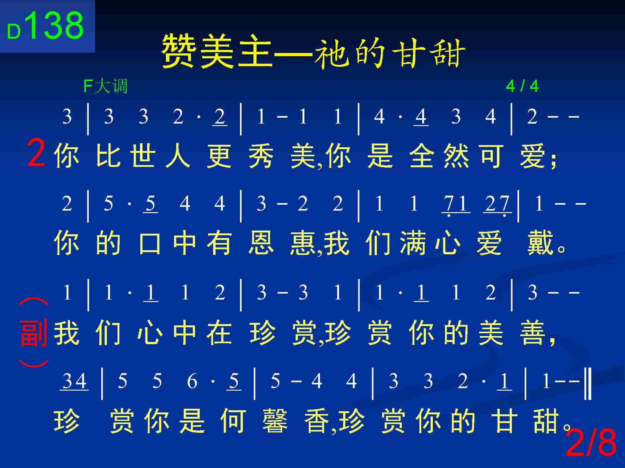 你比世人更秀美,你是全然可爱;你的口中有恩惠,我们满心爱戴。