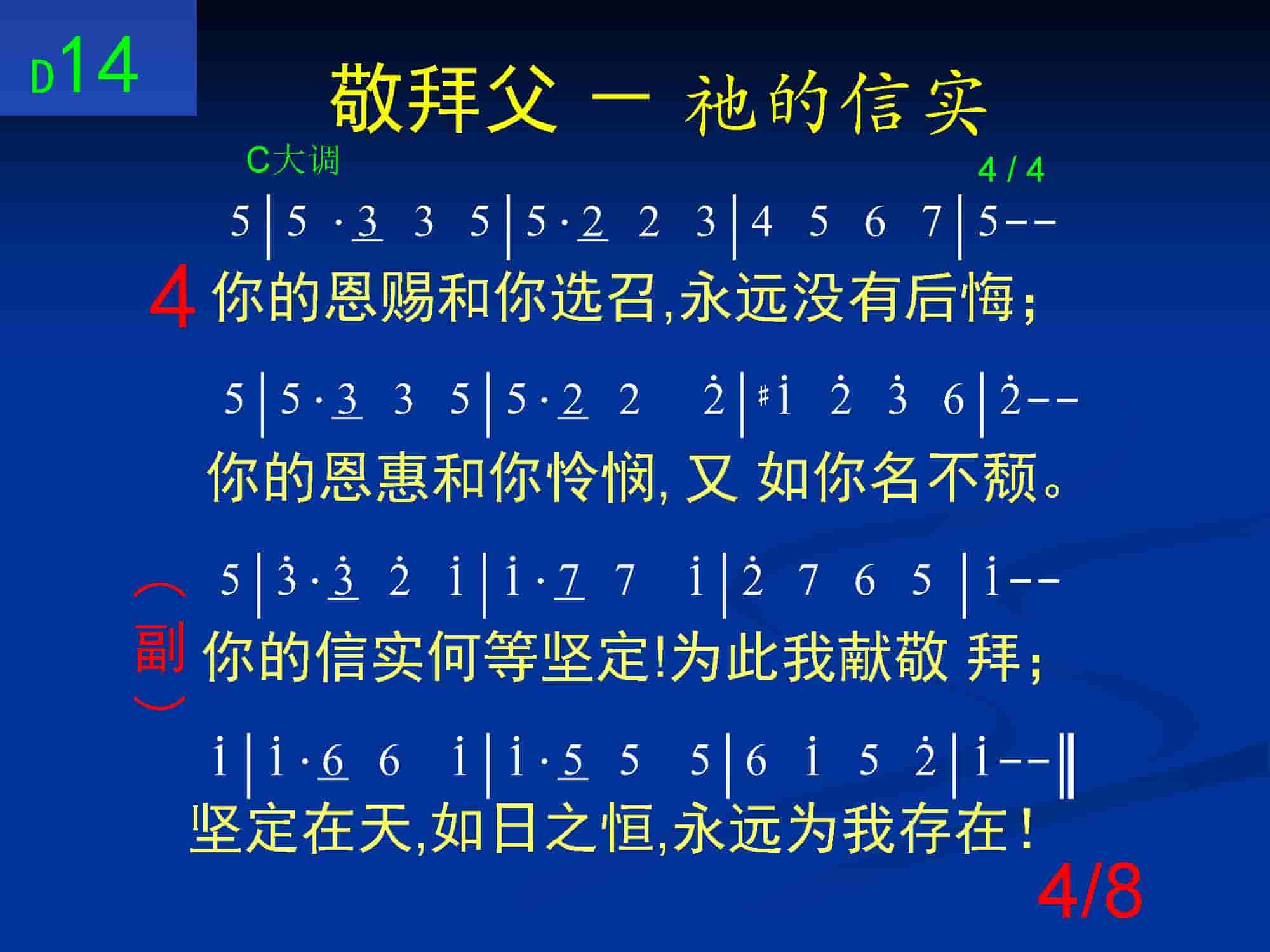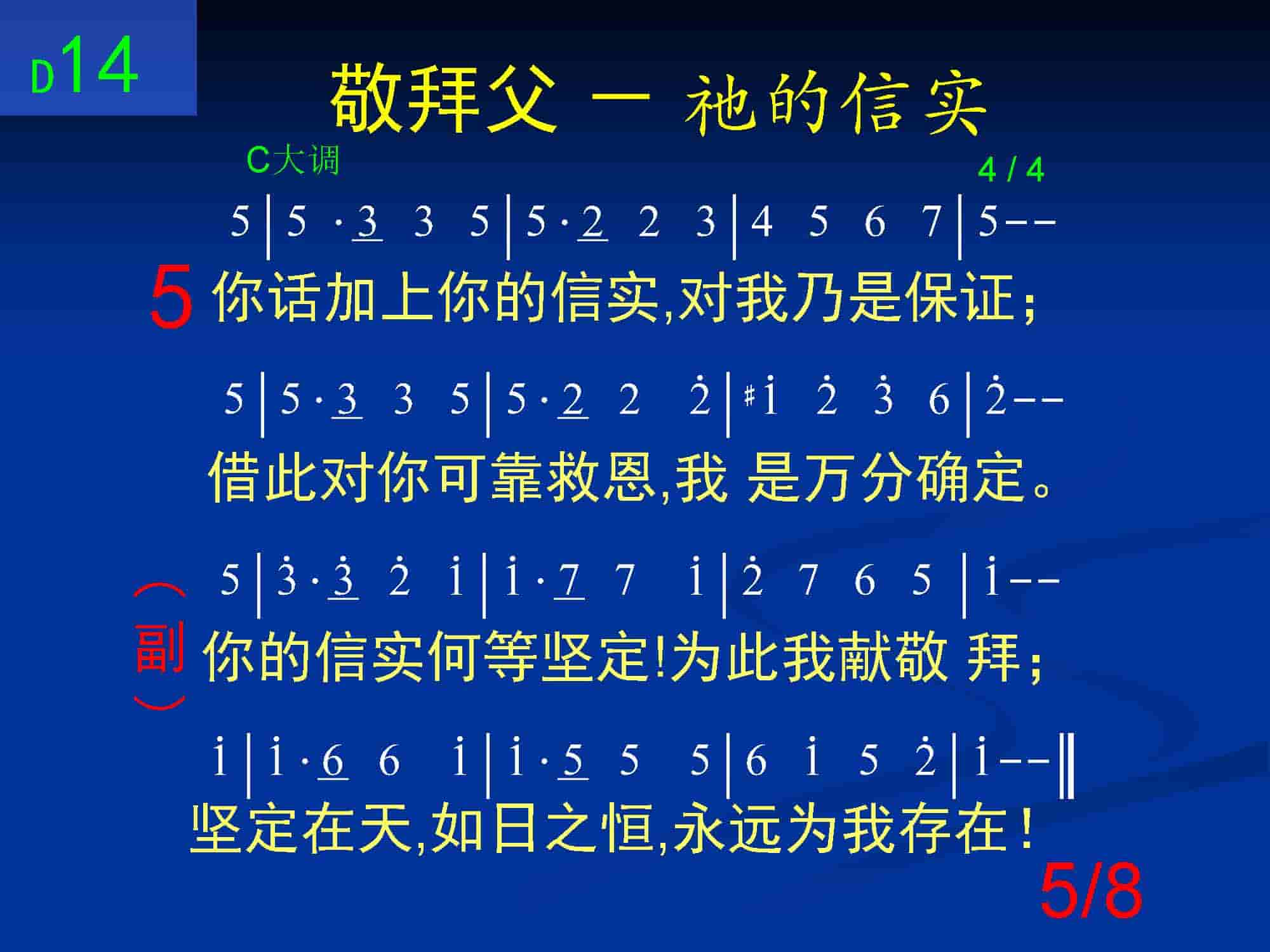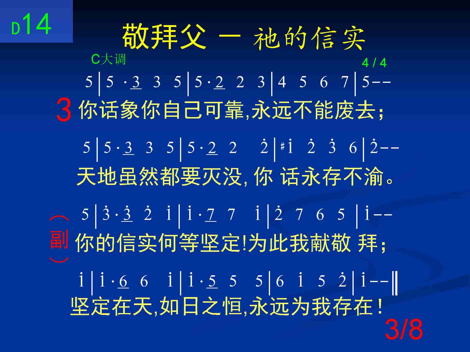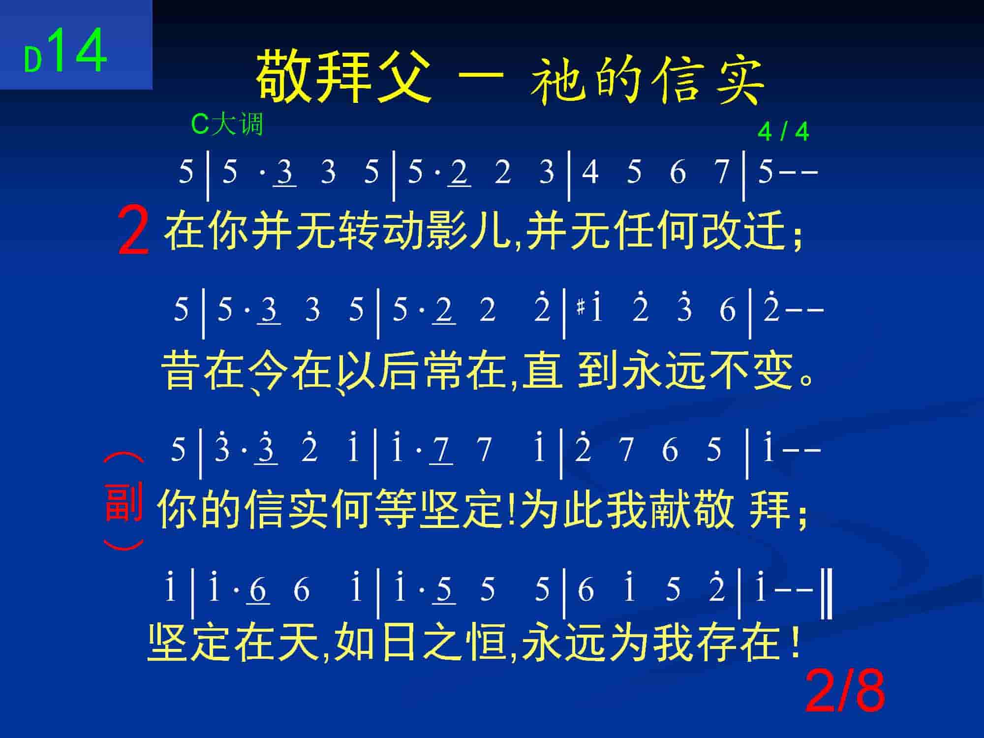 你的信实何等坚定!为此我献敬拜;坚定在天,如日之恒,永远为我存在!