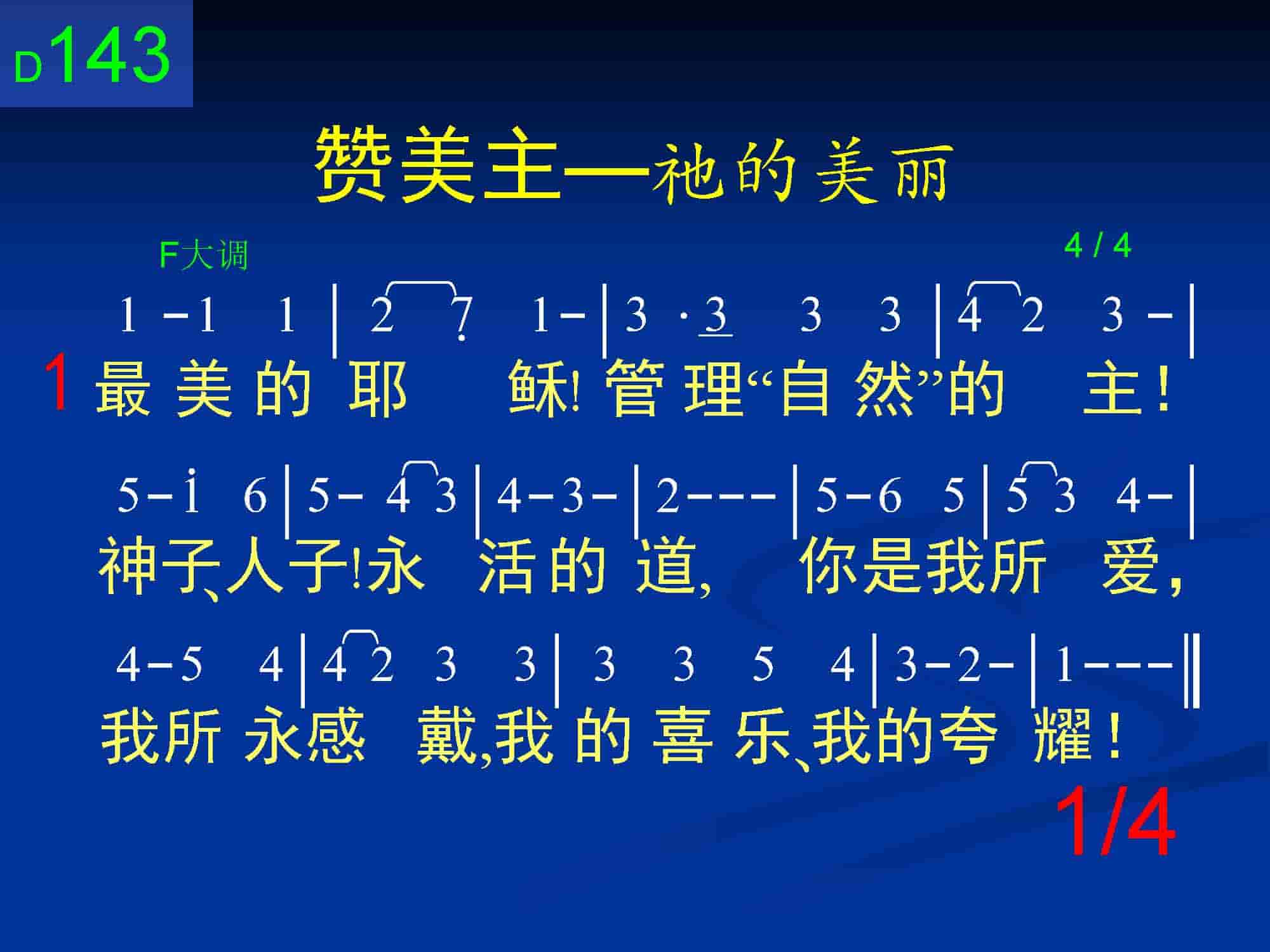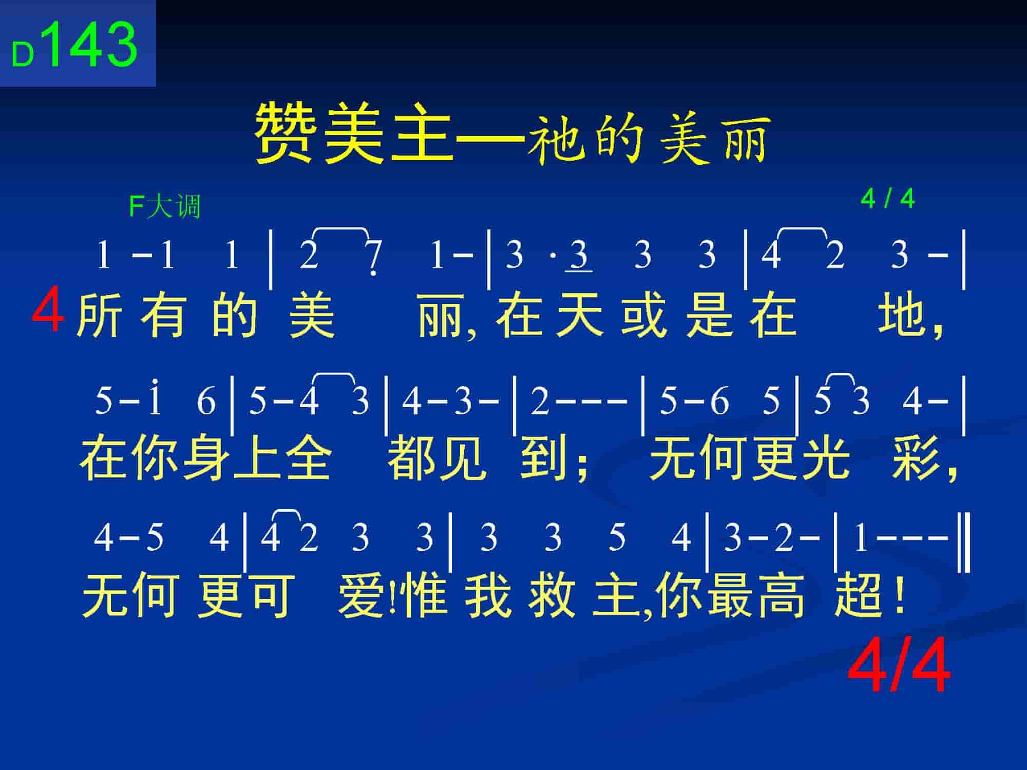 所有的美丽,在天或是在地,在你身上全都见到;无何更光彩,无何更可爱!唯我救主,你最高超!