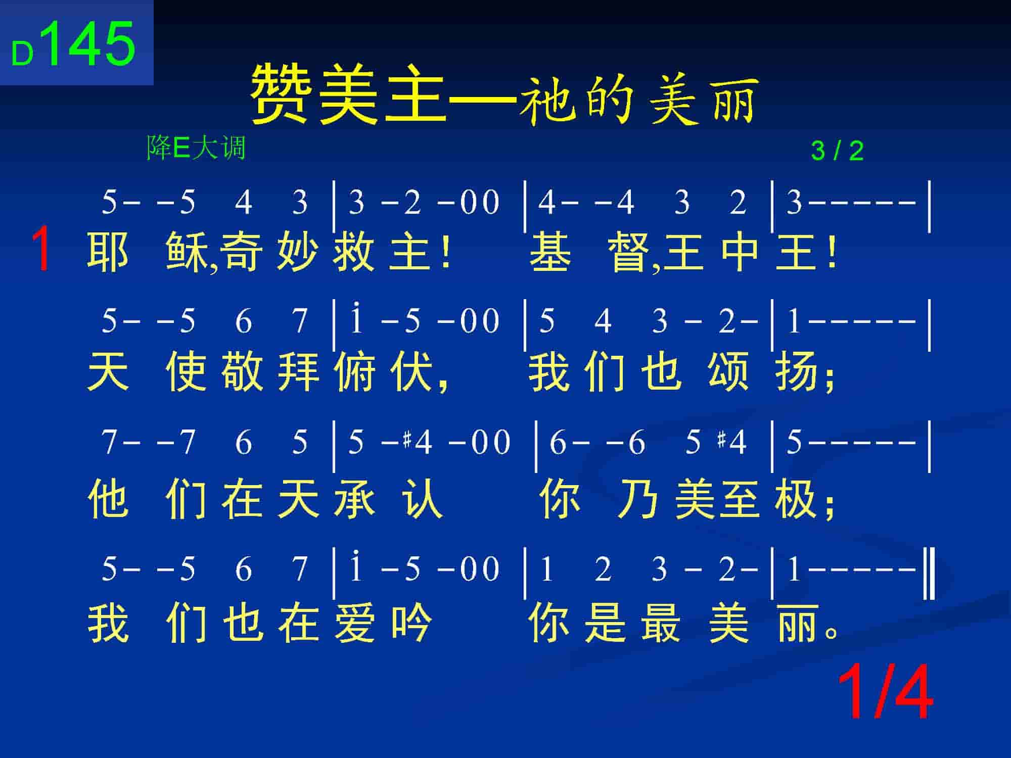 耶稣,奇妙救主!基督,王中王!天使敬拜俯伏,我们也颂扬;他们在天承认你乃美至极;我们也在爱吟你是最美丽。