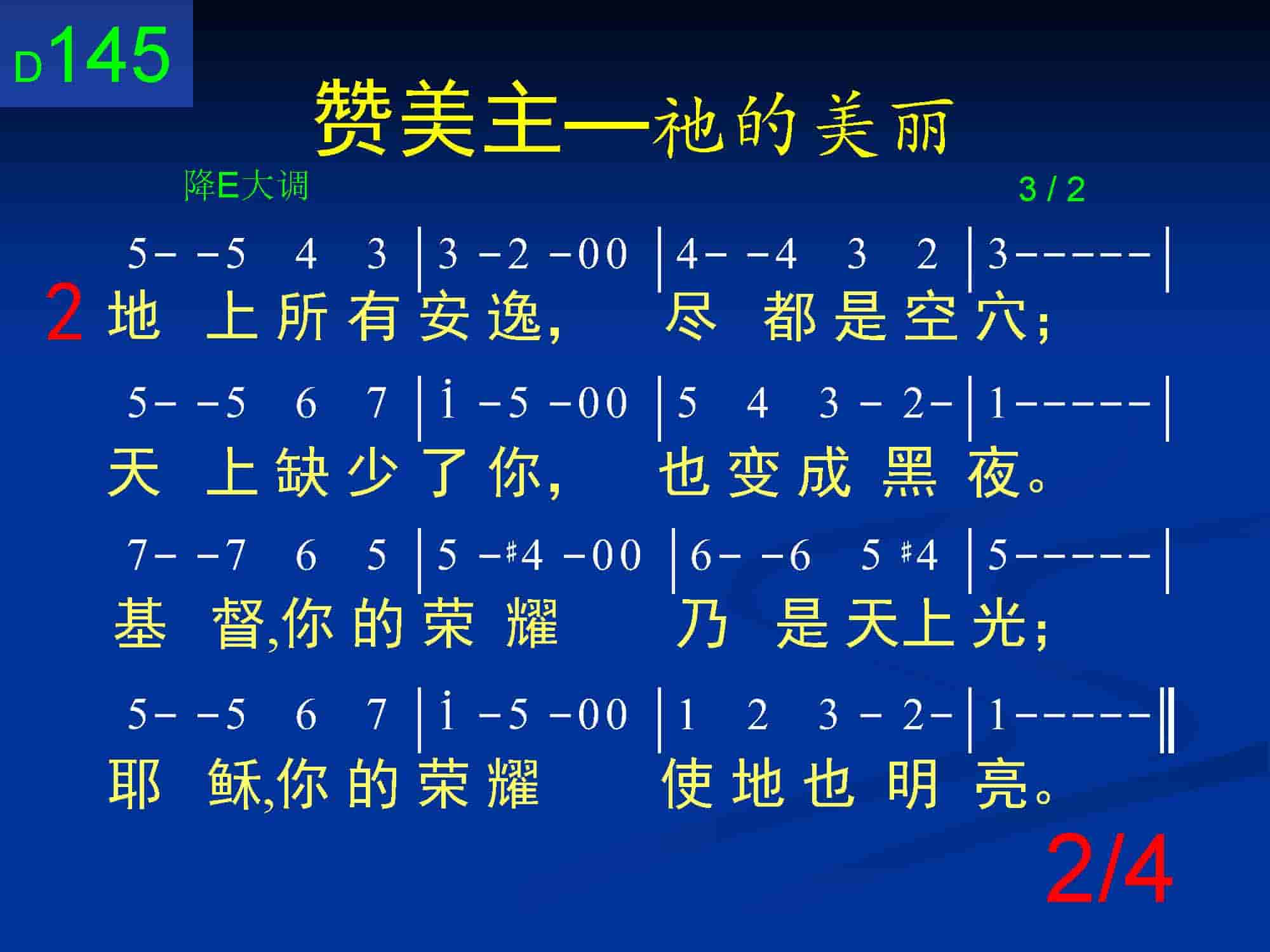 地上所有安逸,尽都是空穴;天上缺少了你,也变成黑夜。基督,你的荣耀乃是天上光;耶稣,你的荣耀使地也明亮。