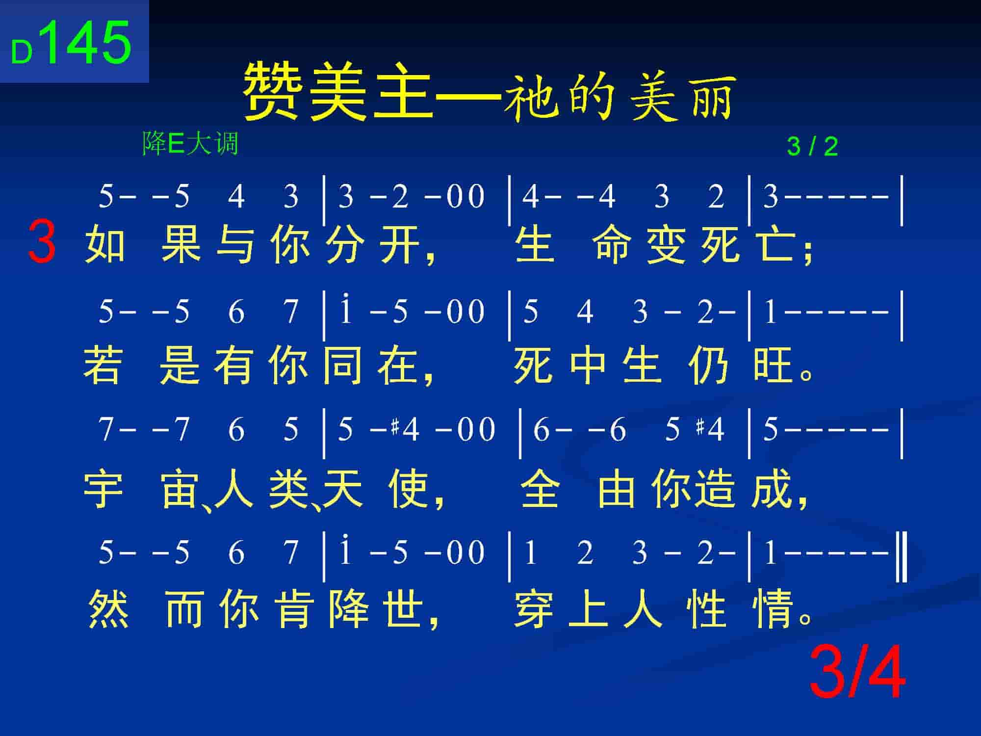 如果与你分开,生命变死亡;若是有你同在,死中生仍旺。宇宙、人类、天使,全由你造成,然而你肯降世,穿上人性情。
