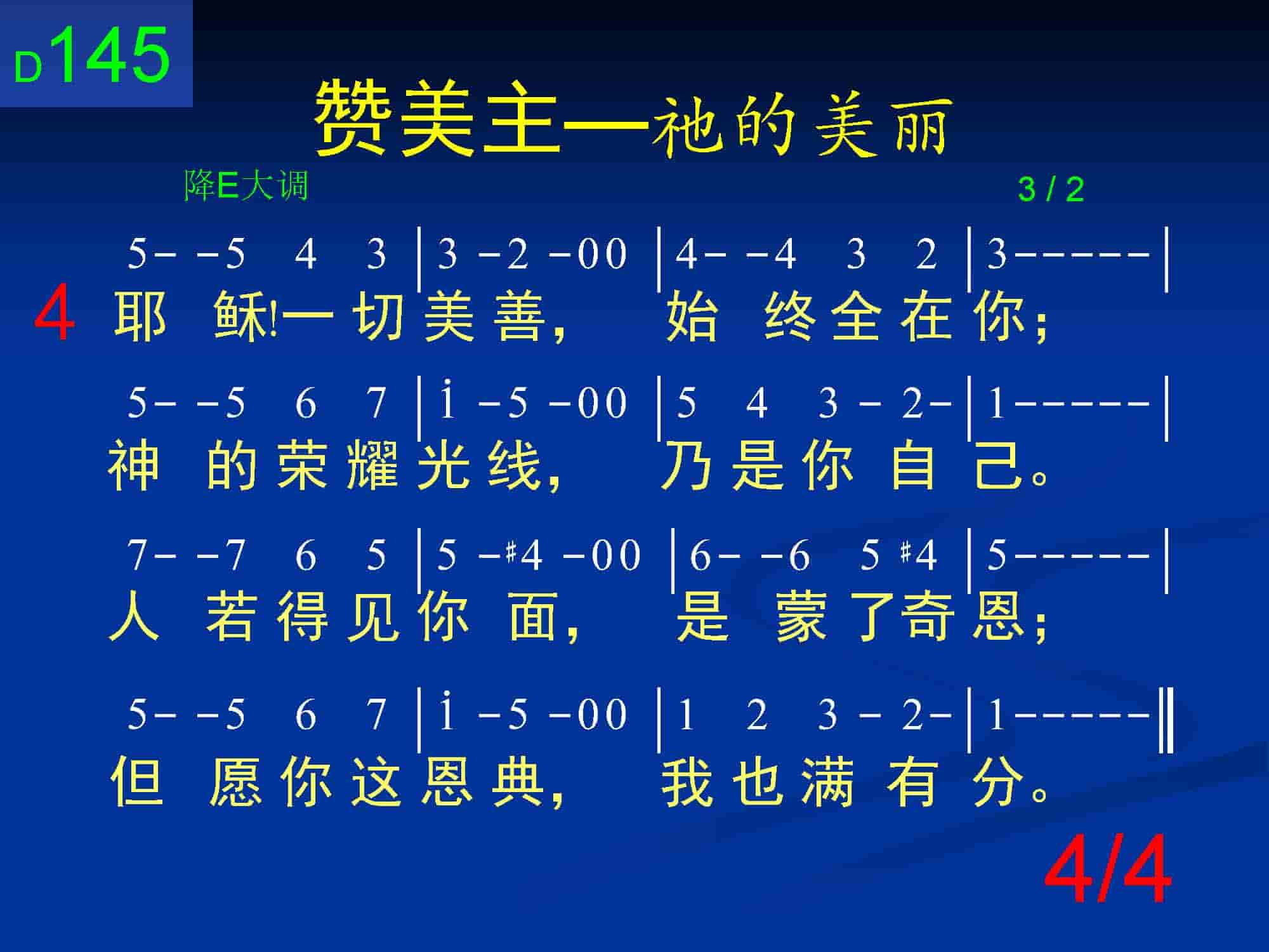 耶稣!一切美善,始终全在你;神的荣耀光线,乃是你自己。人若得见你面,是蒙了奇恩;但愿你这恩典,我也满有分。