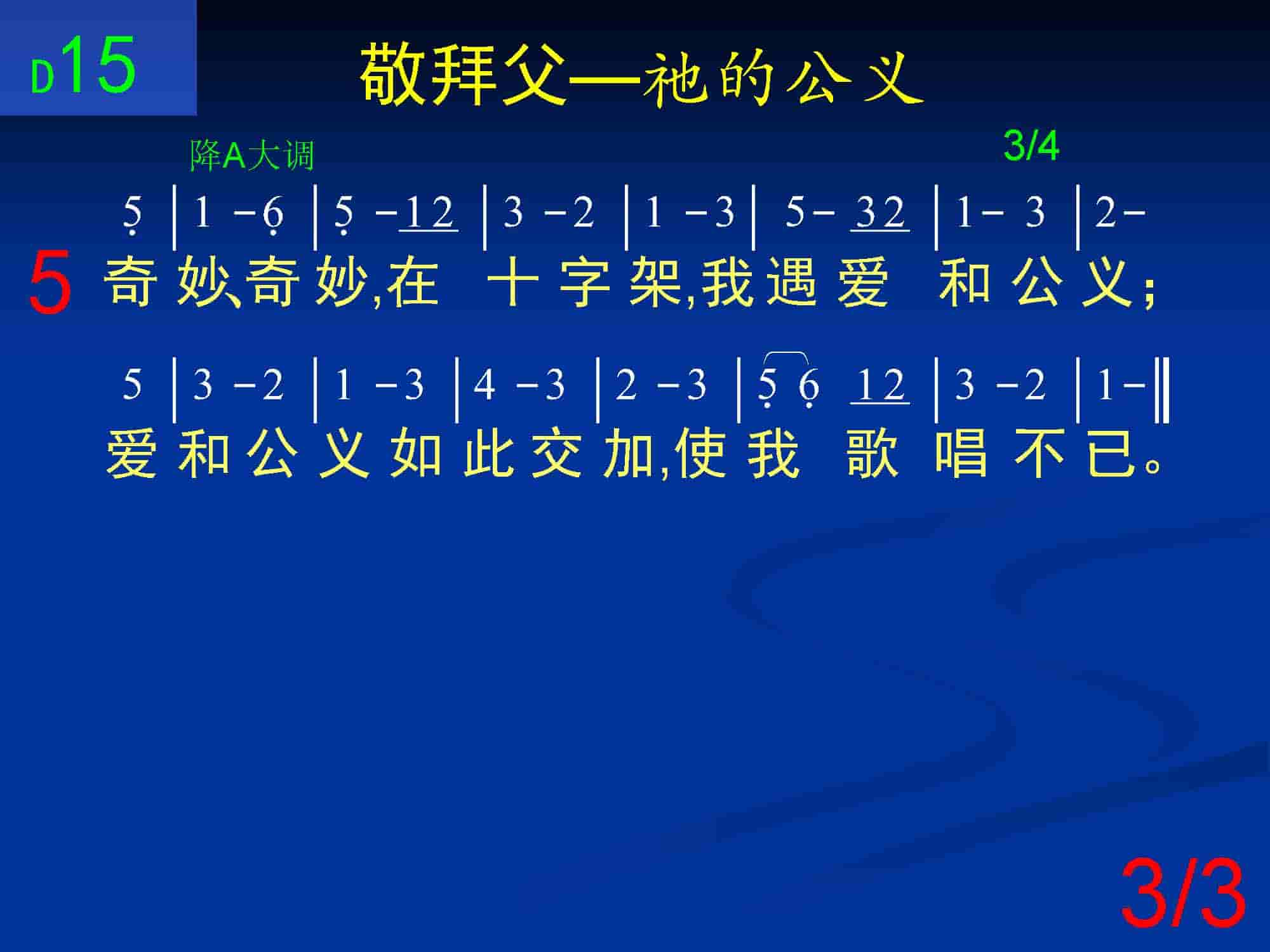 奇妙、奇妙,在十字架,我遇爱和公义;爱和公义如此交加,使我歌唱不已。