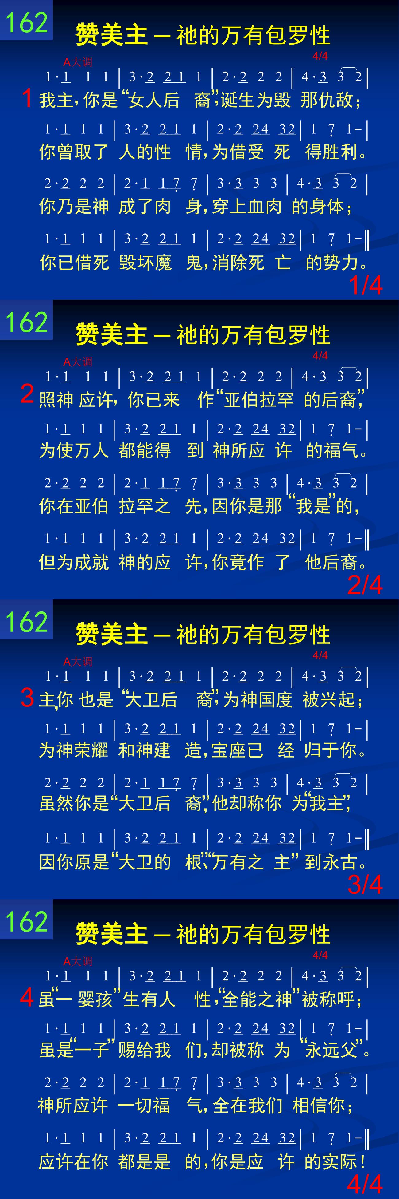 我主,你是“女人后裔,”诞生为毁那仇敌;你曾取了人的性情,为借受死得胜利。你乃是神成了肉身,穿上血肉的身体;你已借死毁坏魔鬼,消除死亡的势力。