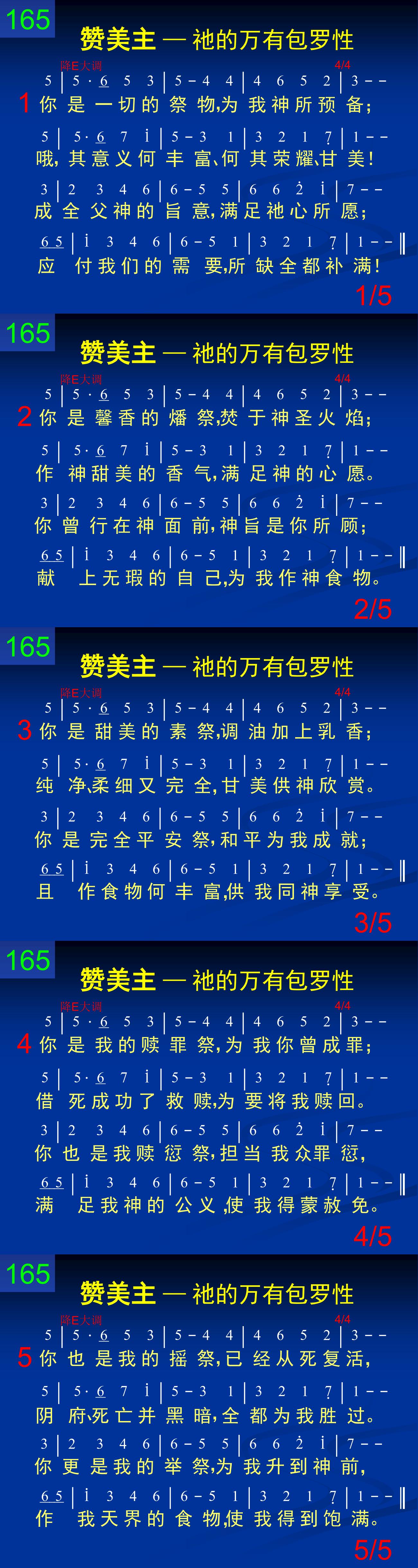你是一切的祭物,为我神所预备;哦,其意义何丰富、何其荣耀、甘美!成全父神的旨意,满足祂心所愿;应付我们的需要,所缺全都补满!