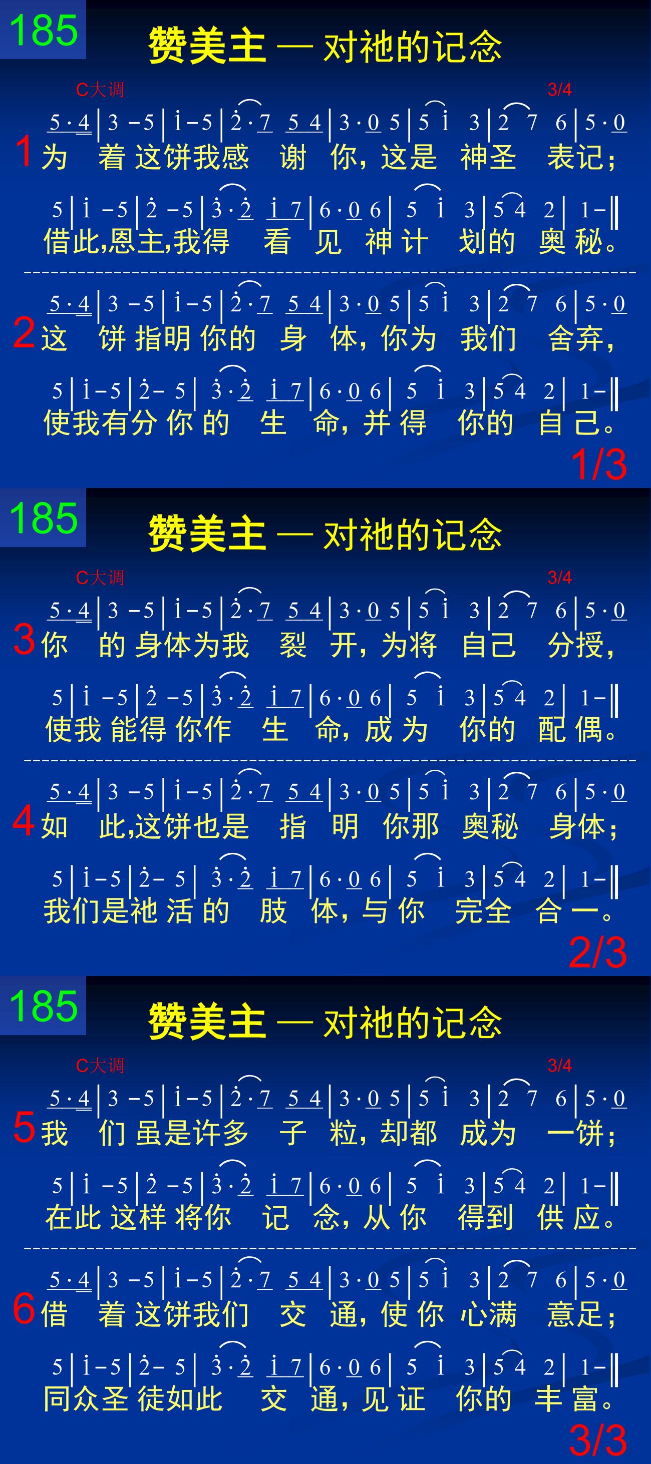 借着这饼我们交通,使你心满意足;同众圣徒如此交通,见证你的丰富。
