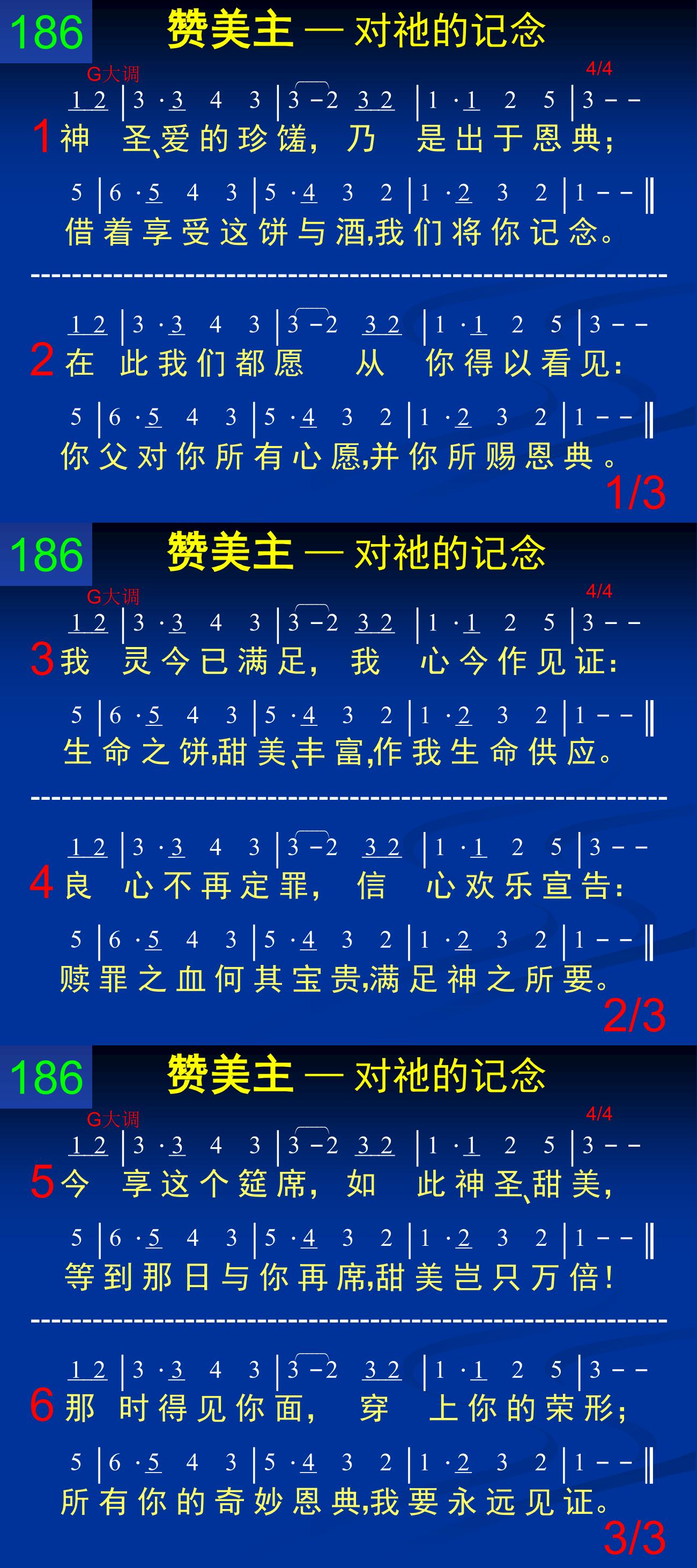 神圣、爱的珍馐,乃是出于恩典;借着享受这饼与酒,我们将你记念。
