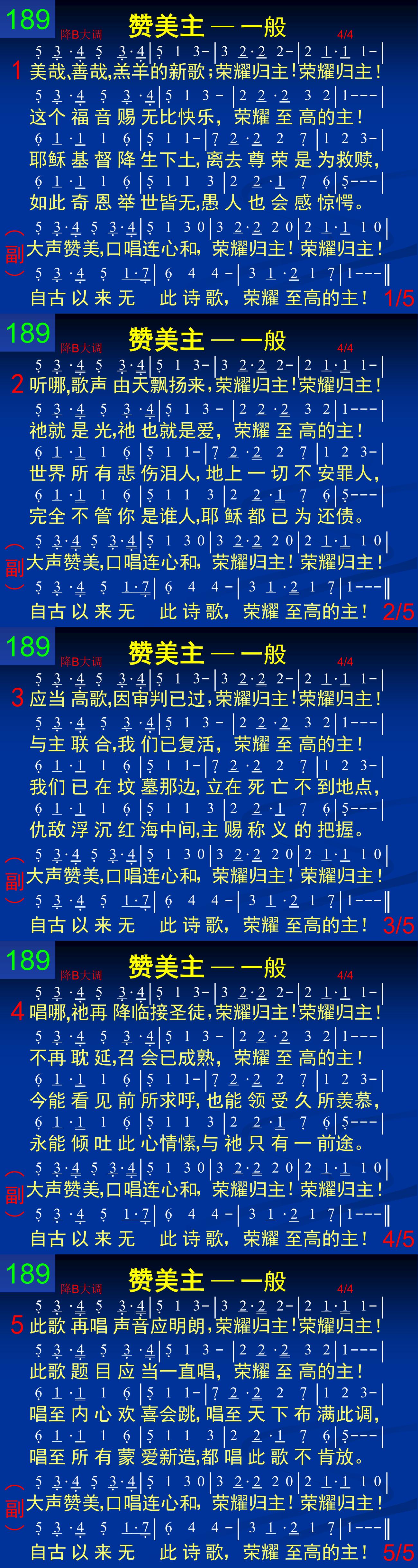 此歌再唱声音应明朗,荣耀归主!荣耀归主!此歌题目应当一直唱,荣耀至高的主!唱至内心欢喜会跳,唱至天下布满此调,唱至所有蒙爱新造,都唱此歌不肯放。