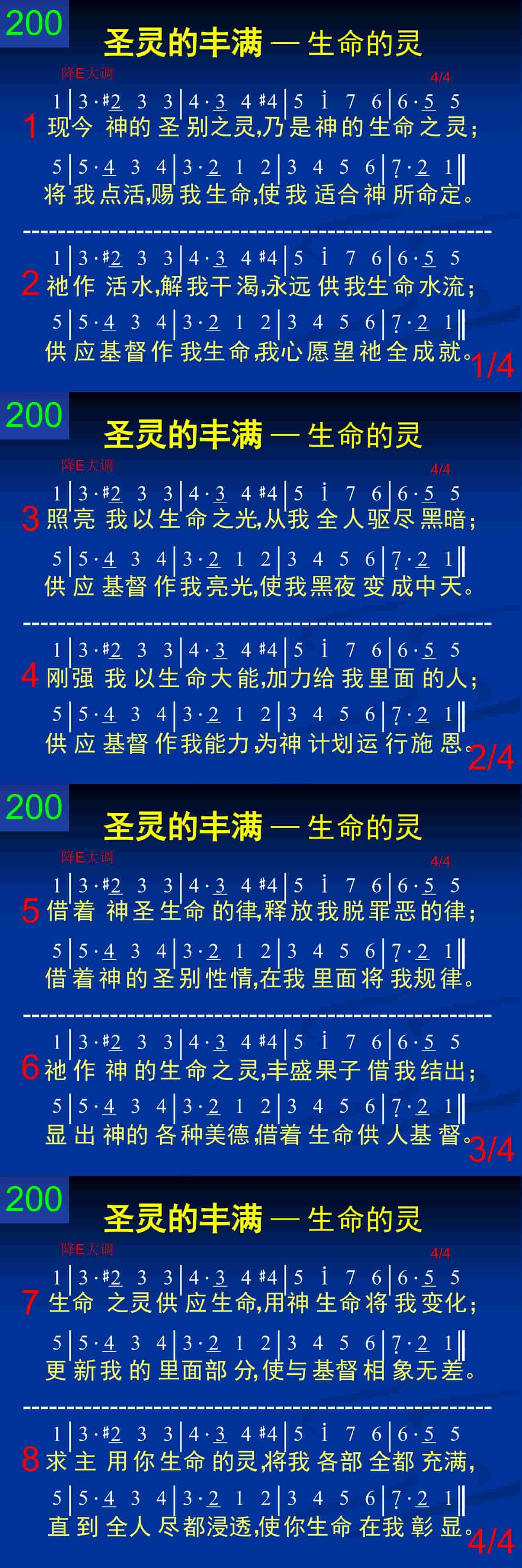 生命之灵供应生命,用神生命将我变化;更新我的里面部分,使与基督相像无差。