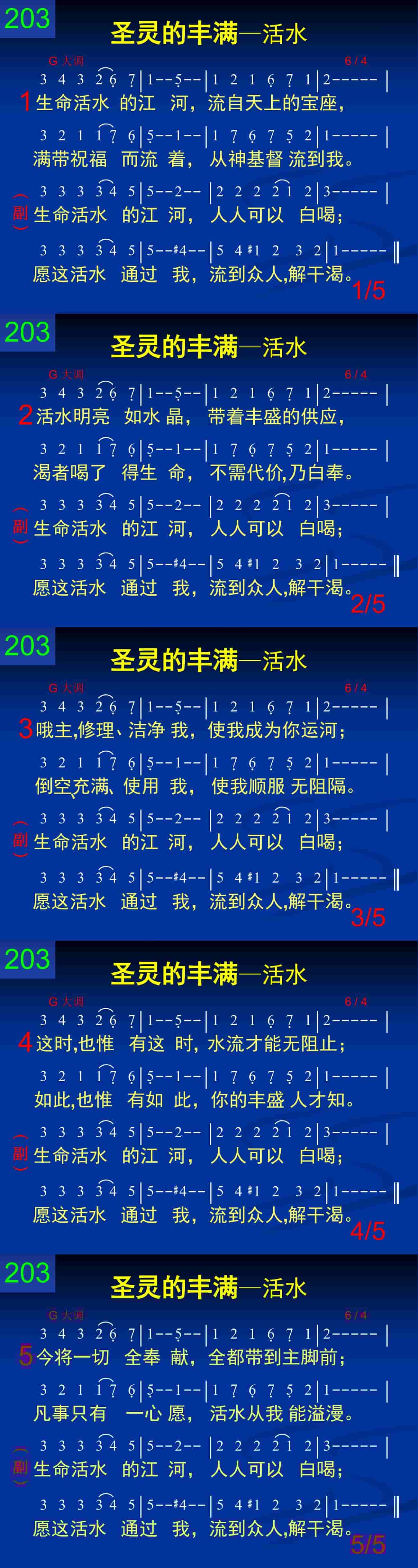 今将一切全奉献,全都带到主脚前;凡事只有一心愿,活水从我能溢漫。