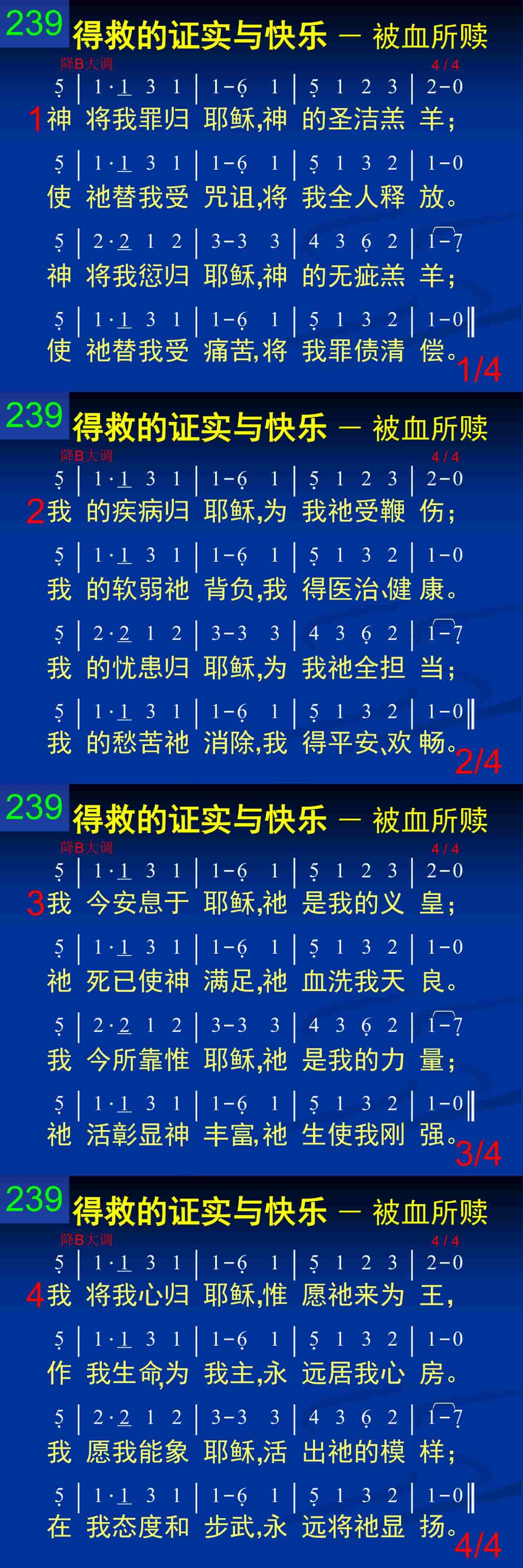 神将我罪归耶稣,神的圣洁羔羊;使祂替我受咒诅,将我全人释放。神将我愆归耶稣,神的无疵羔羊;使祂替我受痛苦,将我罪债清偿。