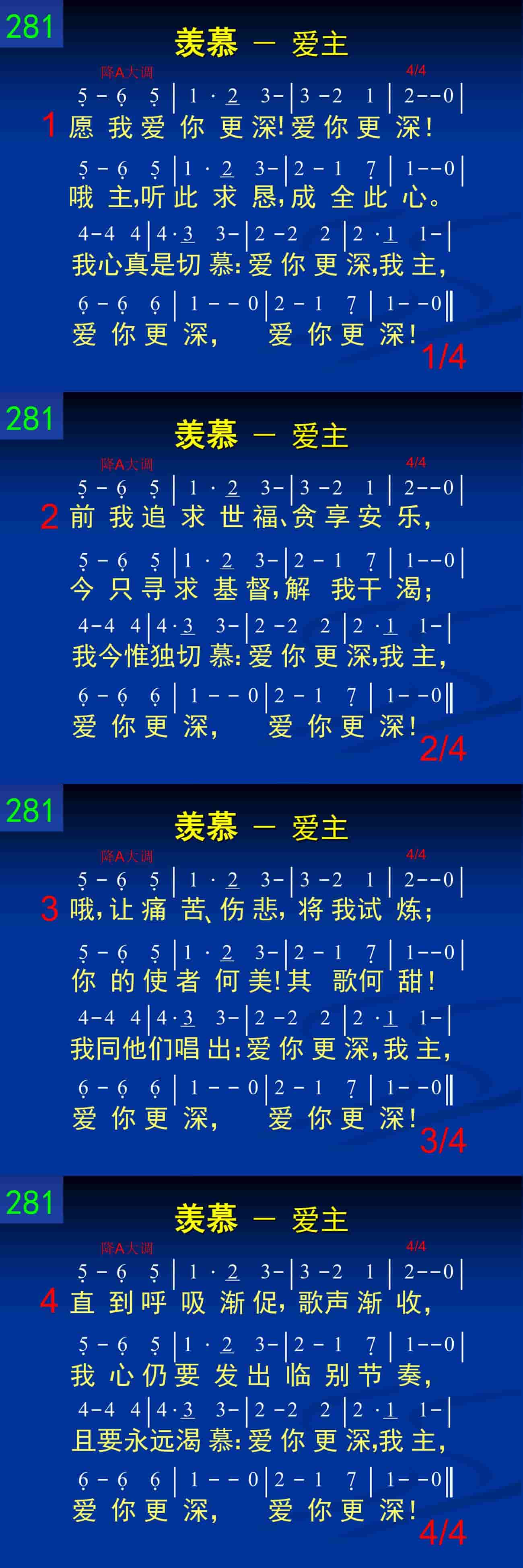 愿我爱你更深!爱你更深!哦主,听此求恳,成全此心。我心真是切慕:爱你更深,我主,爱你更深,爱你更深!