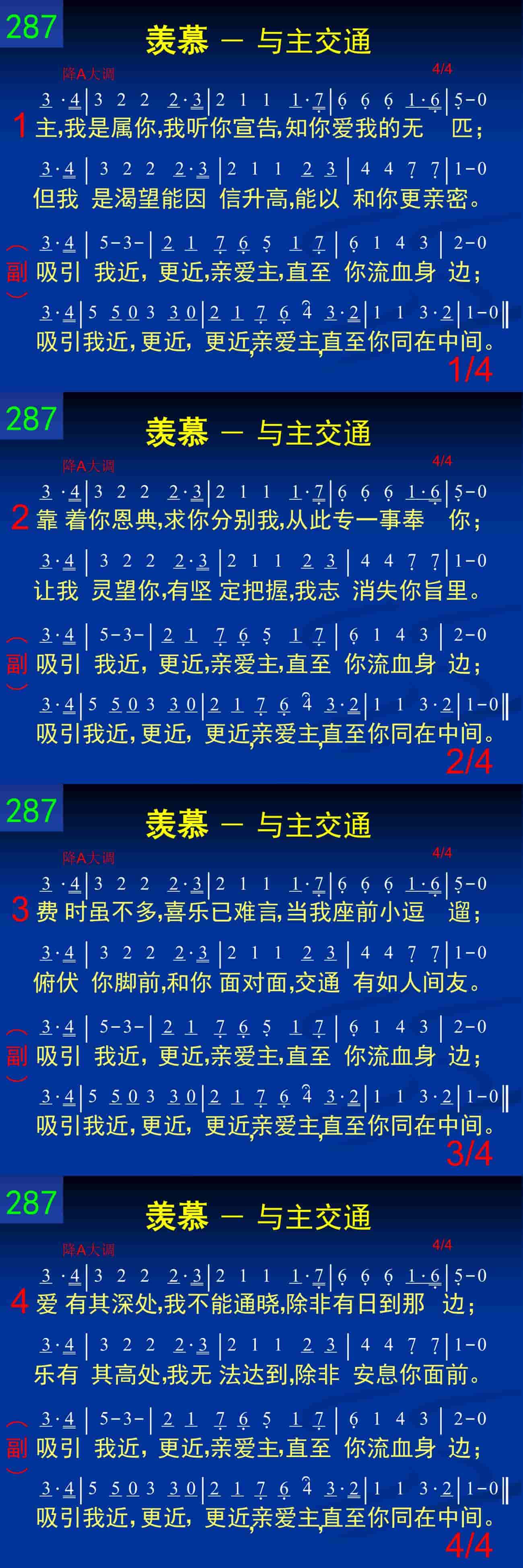 吸引我近,更近,亲爱主,直至你流血身边;吸引我近,更近,更近,亲爱主,直至你同在中间。