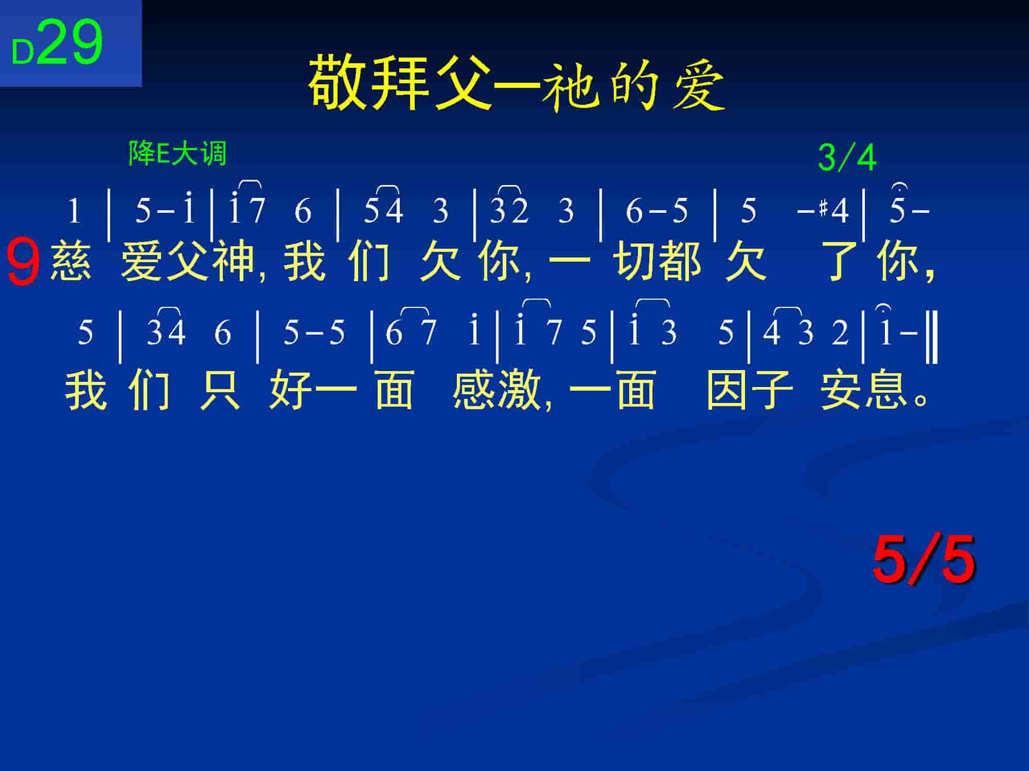 慈爱父神,我们欠你,一切都欠了你,我们只好一面感激,一面因子安息。
