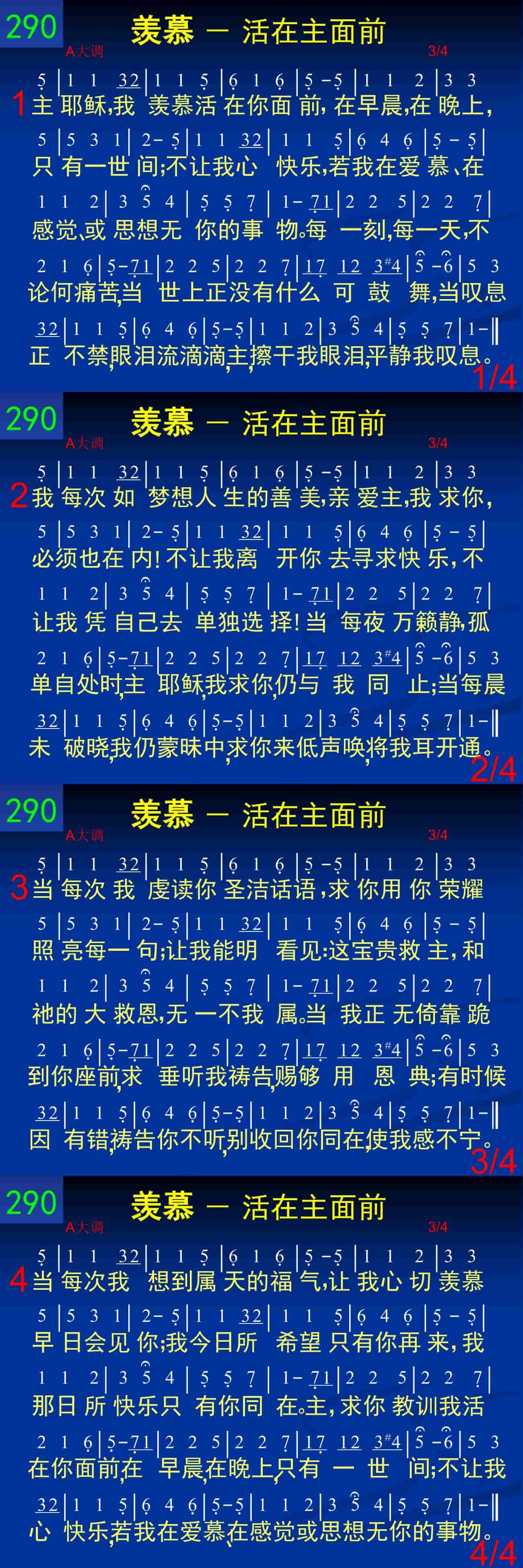 当每次我虔读你圣洁话语,求你用你荣耀照亮每一句;让我能明看见:这宝贵救主,和祂的大救恩,无一不我属。当我正无倚靠跪到你座前,求垂听我祷告,赐够用恩典;有时候因有错,祷告你不听,别收回你同在,使我感不宁。
