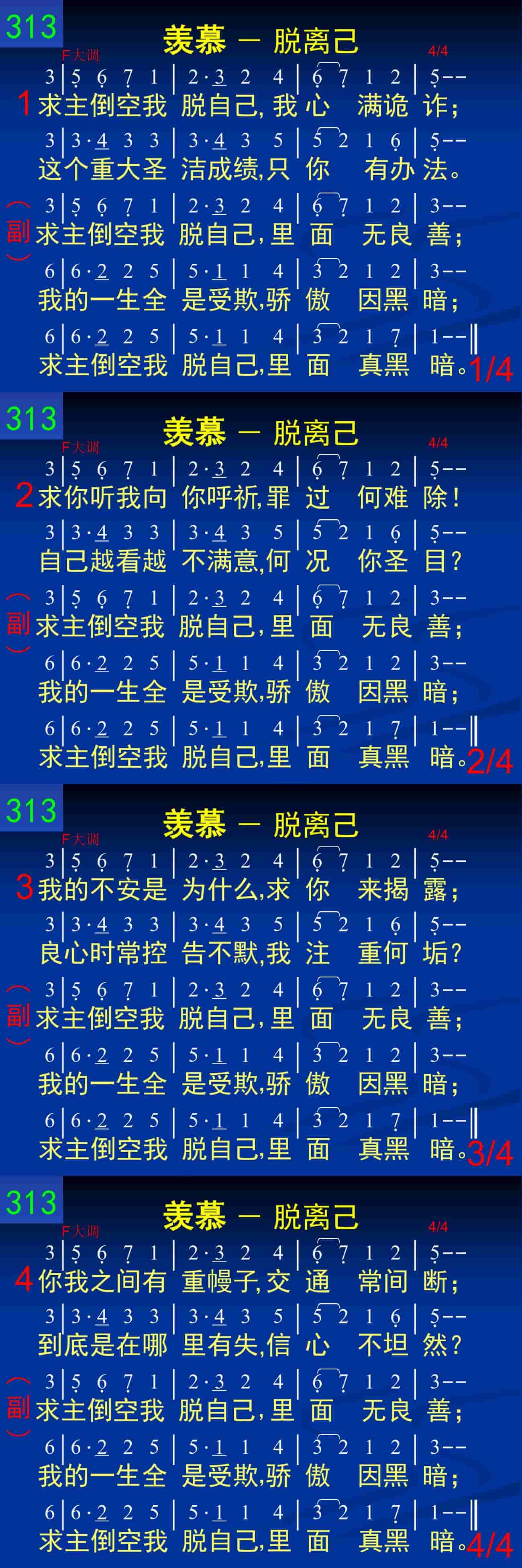 求主倒空我脱自己,里面无良善;我的一生全是受欺,骄傲因黑暗;求主倒空我脱自己,里面真黑暗。